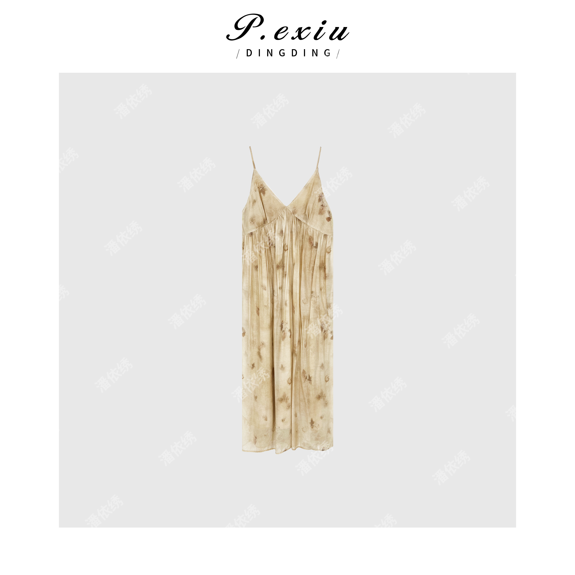 03-4潘依绣丁丁宠粉度假风夏季新款褶皱V领吊带连衣裙 Q3781