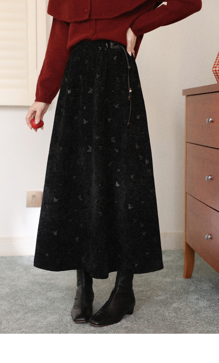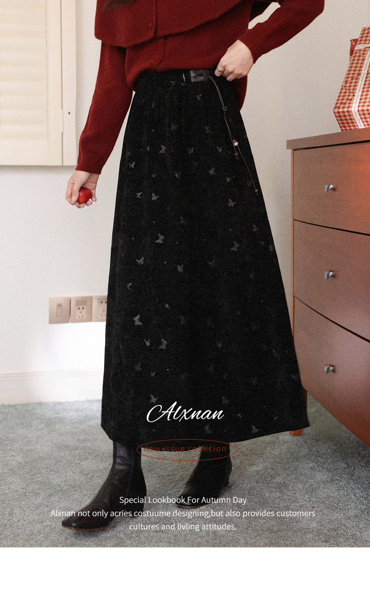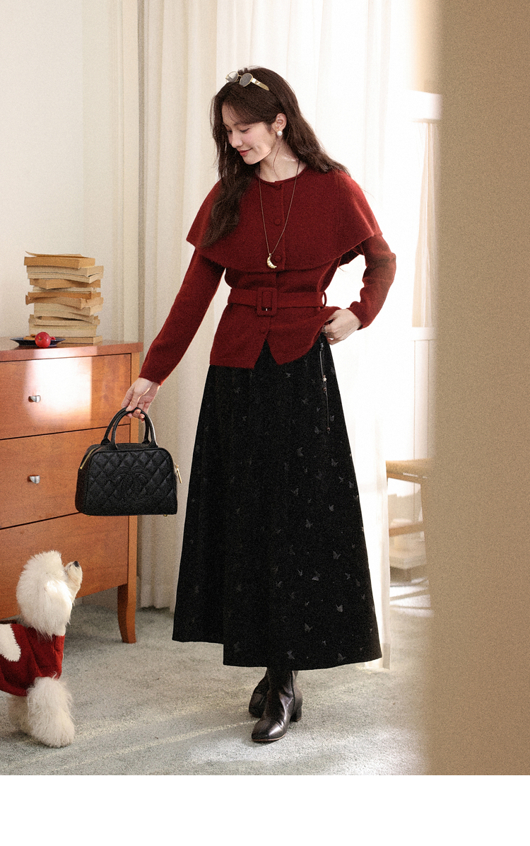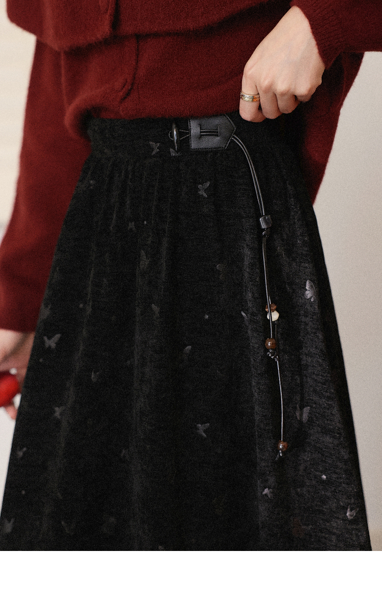 鹿向南「曼城旧事」法式气质黑色A字半身裙女秋冬新款显瘦中长裙