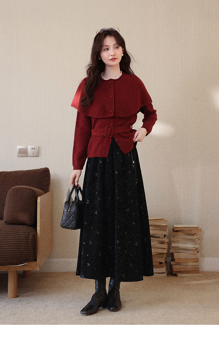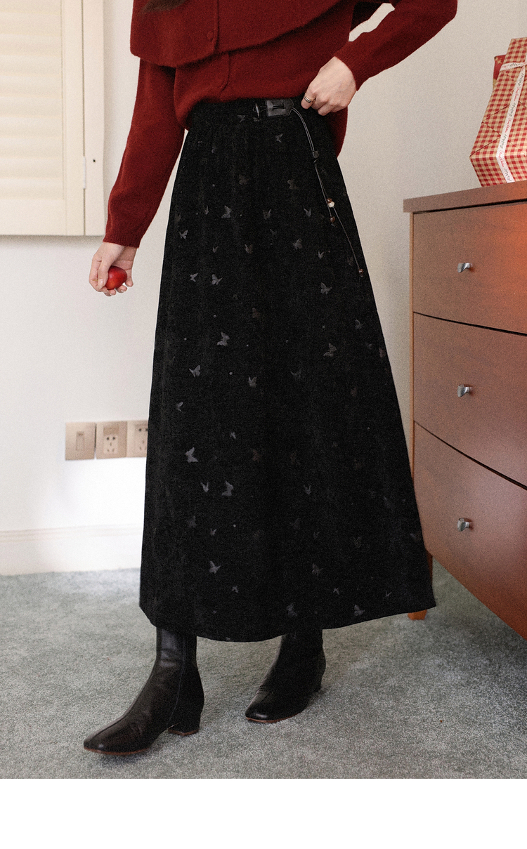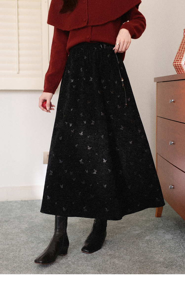 鹿向南「曼城旧事」法式气质黑色A字半身裙女秋冬新款显瘦中长裙