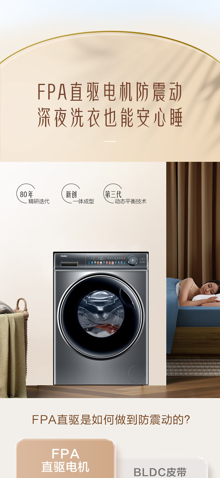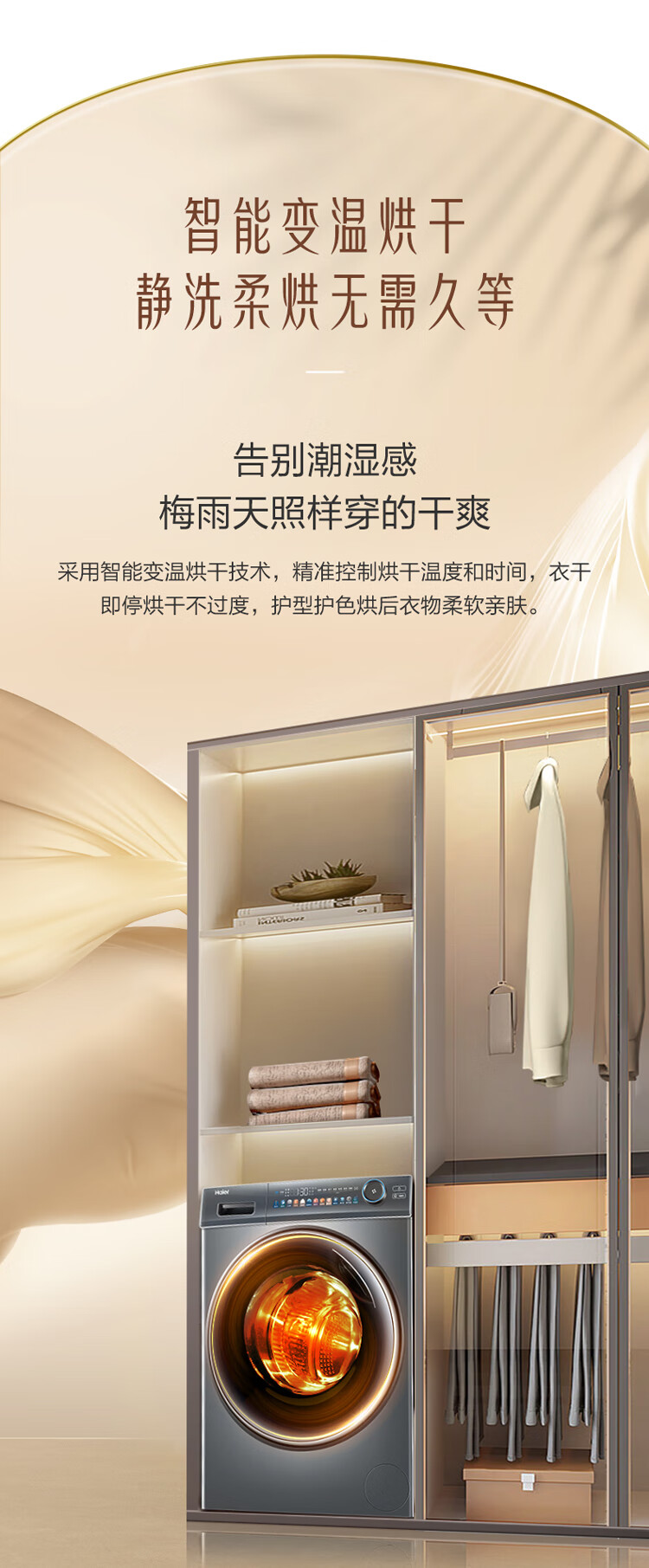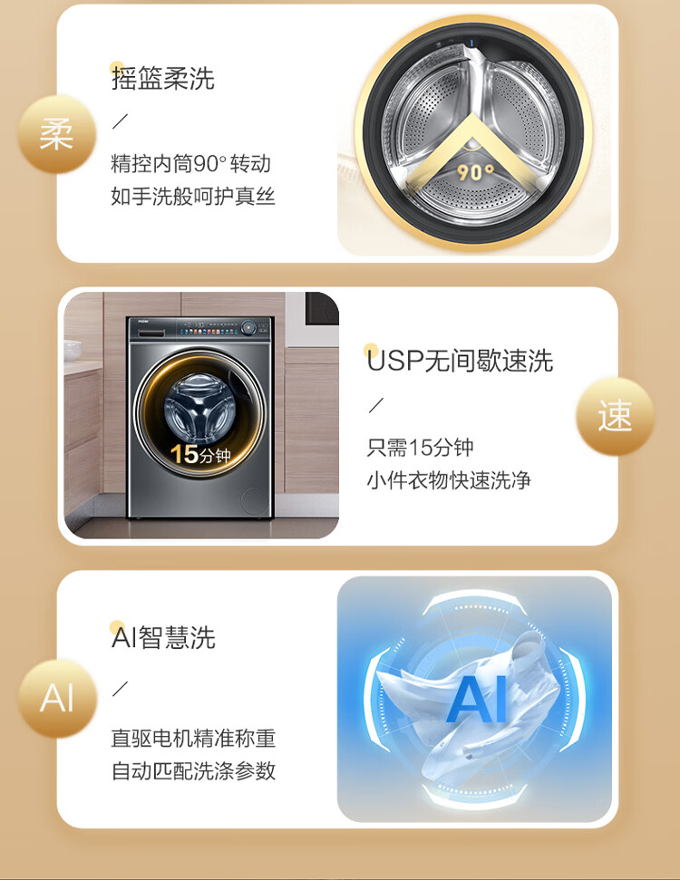 海尔(Haier)光等离子洗衣 10公斤平嵌洗烘一体 彩屏直驱变频 滚筒洗衣全自动 智能投放EG100HMATE81SU1