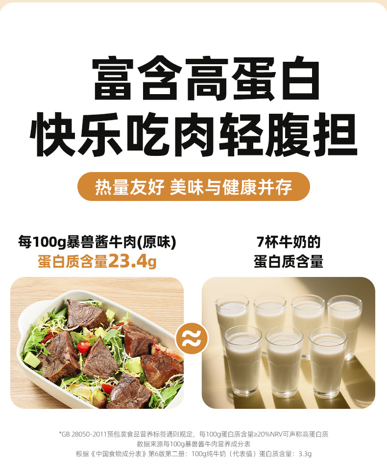 【满300-200】暴肌独角兽酱牛肉即食健身代餐高蛋白卤汁肉脯熟食轻食品 80g*6袋