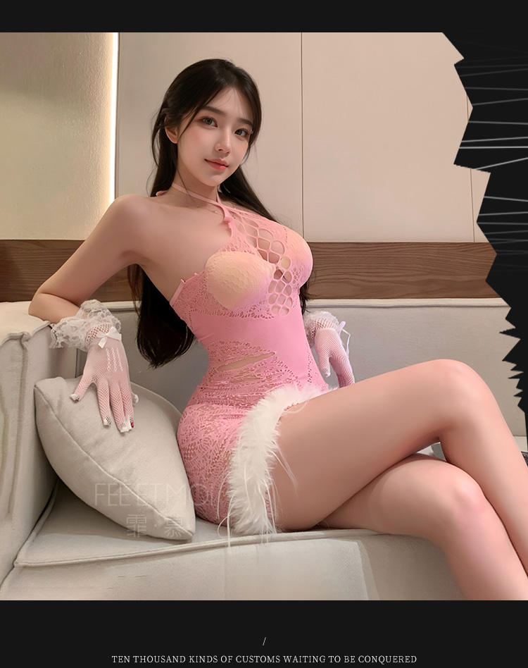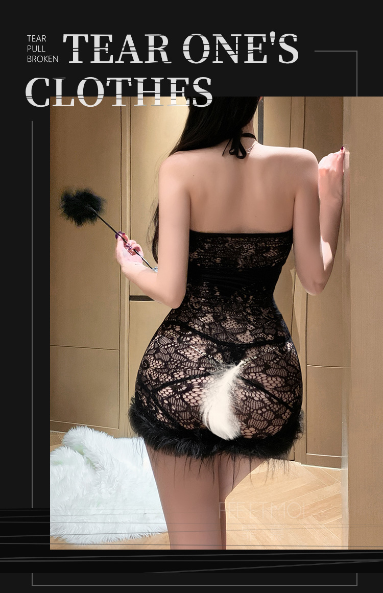 【情趣内衣】霏慕镂空露沟毛绒摆透视连衣裙ZY7434 7434 6977890234447 6977890234454