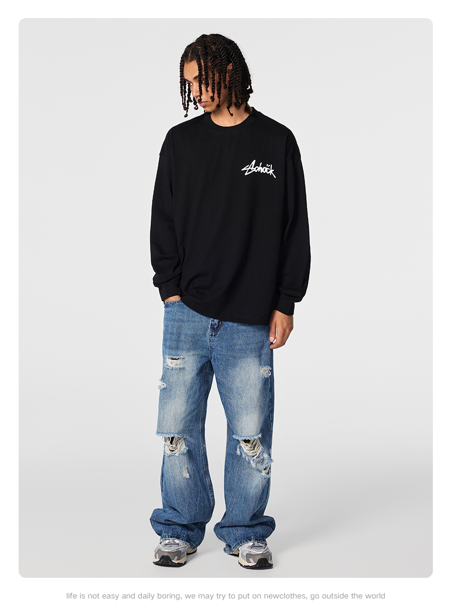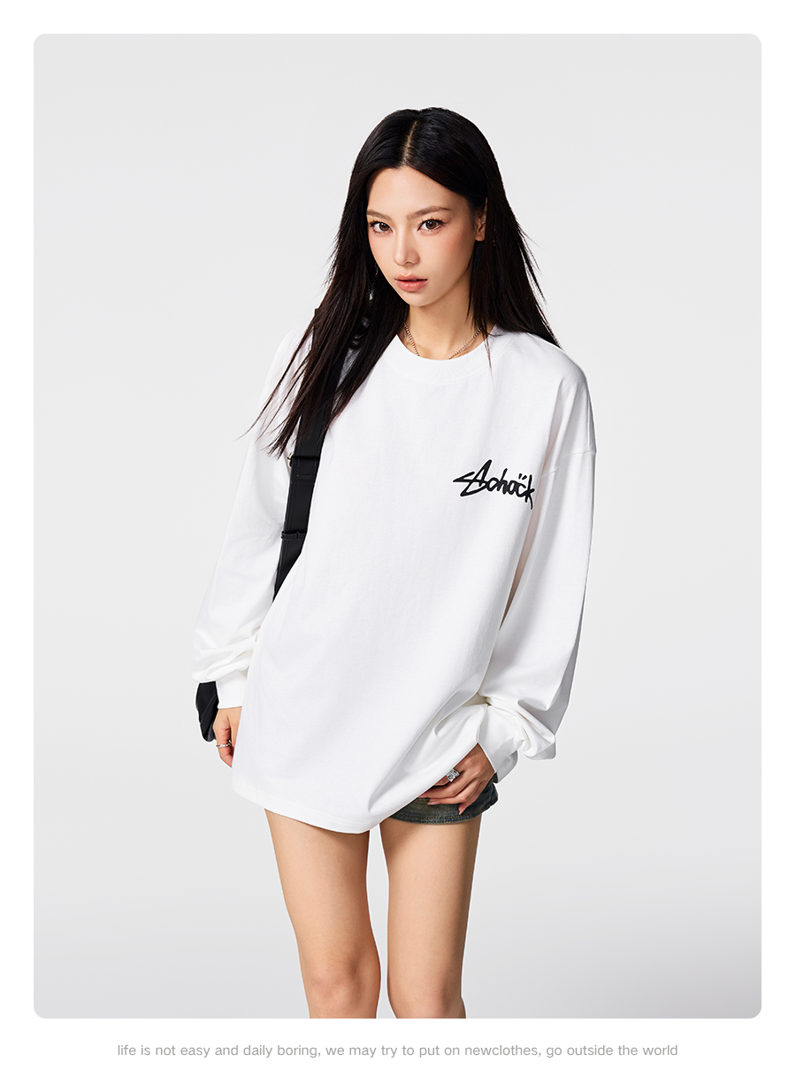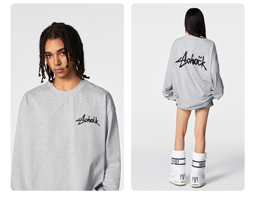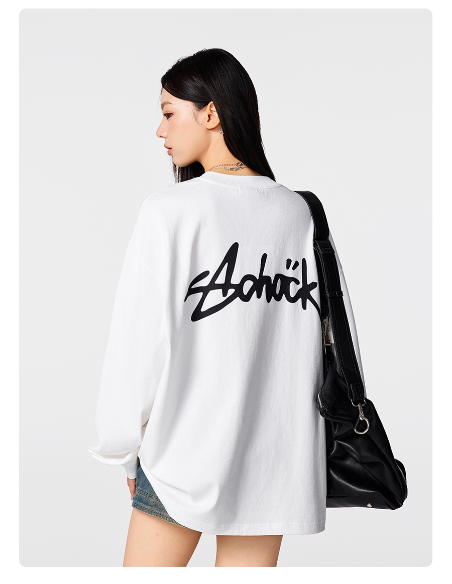 【Achock官方店】国潮街头嘻哈基础logo宽松长袖t简约百搭复古衫t