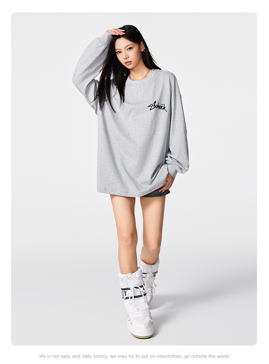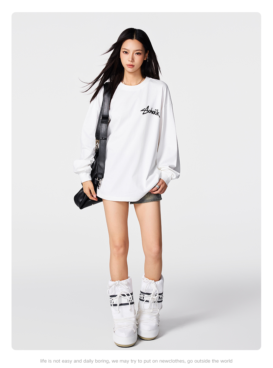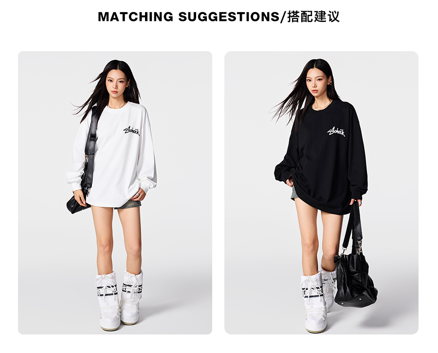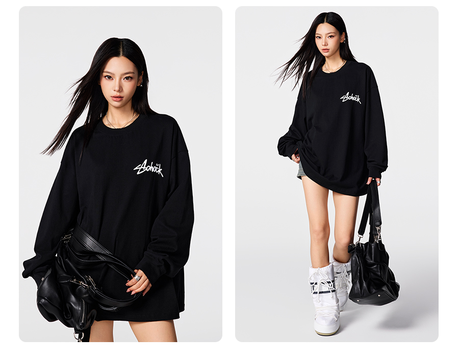 【Achock官方店】国潮街头嘻哈基础logo宽松长袖t简约百搭复古衫t
