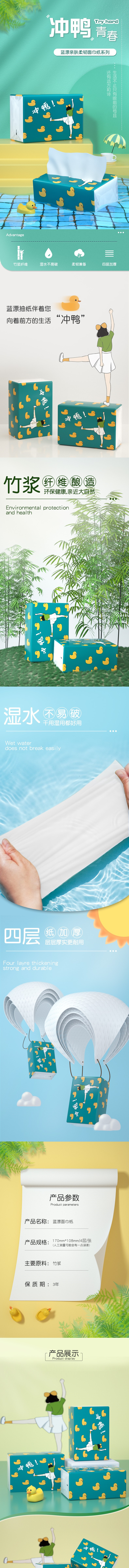 蓝漂Lam pure 冲鸭竹浆白色10包抽纸LP-24133
