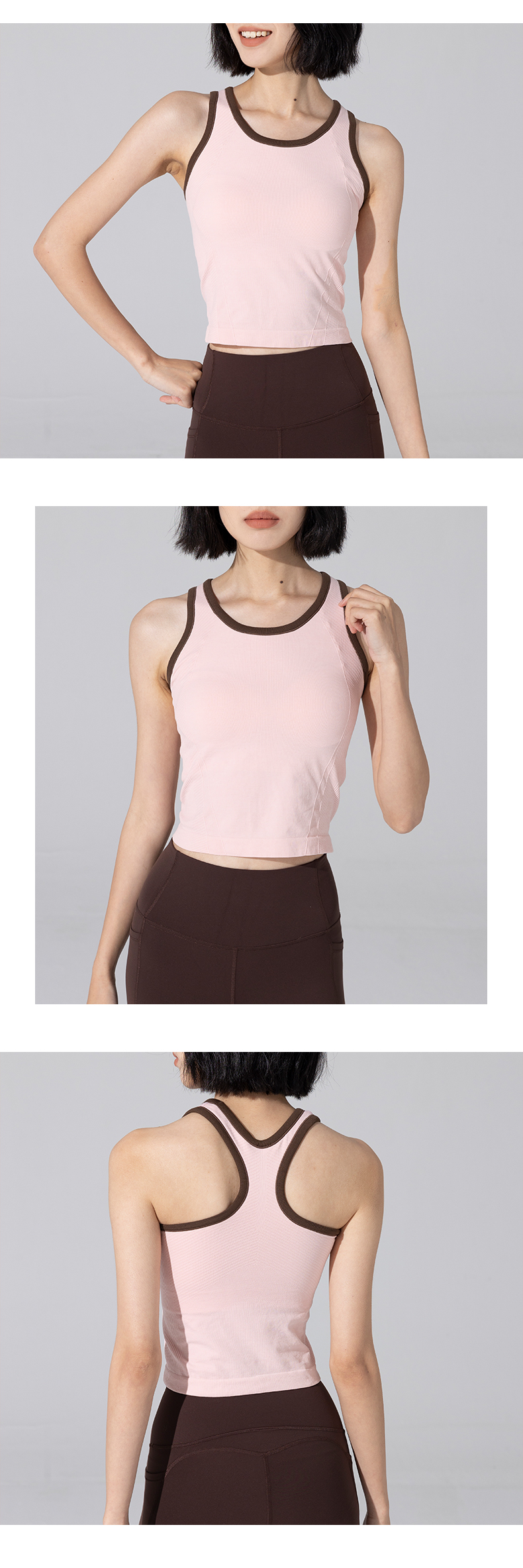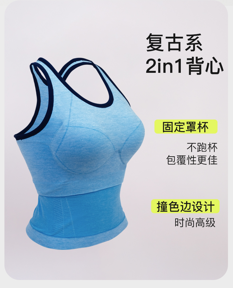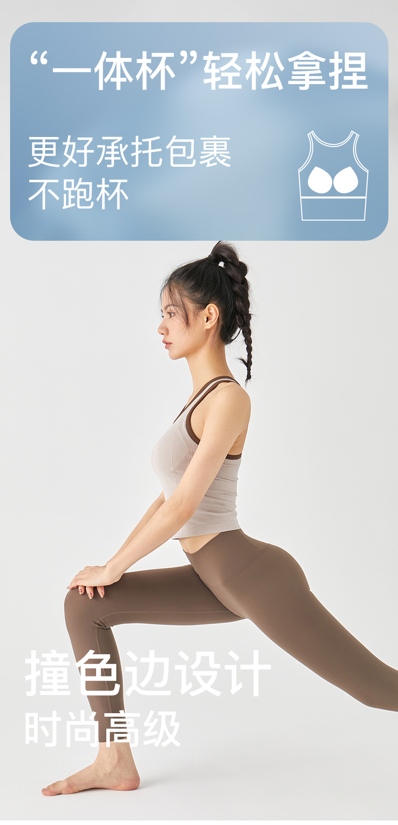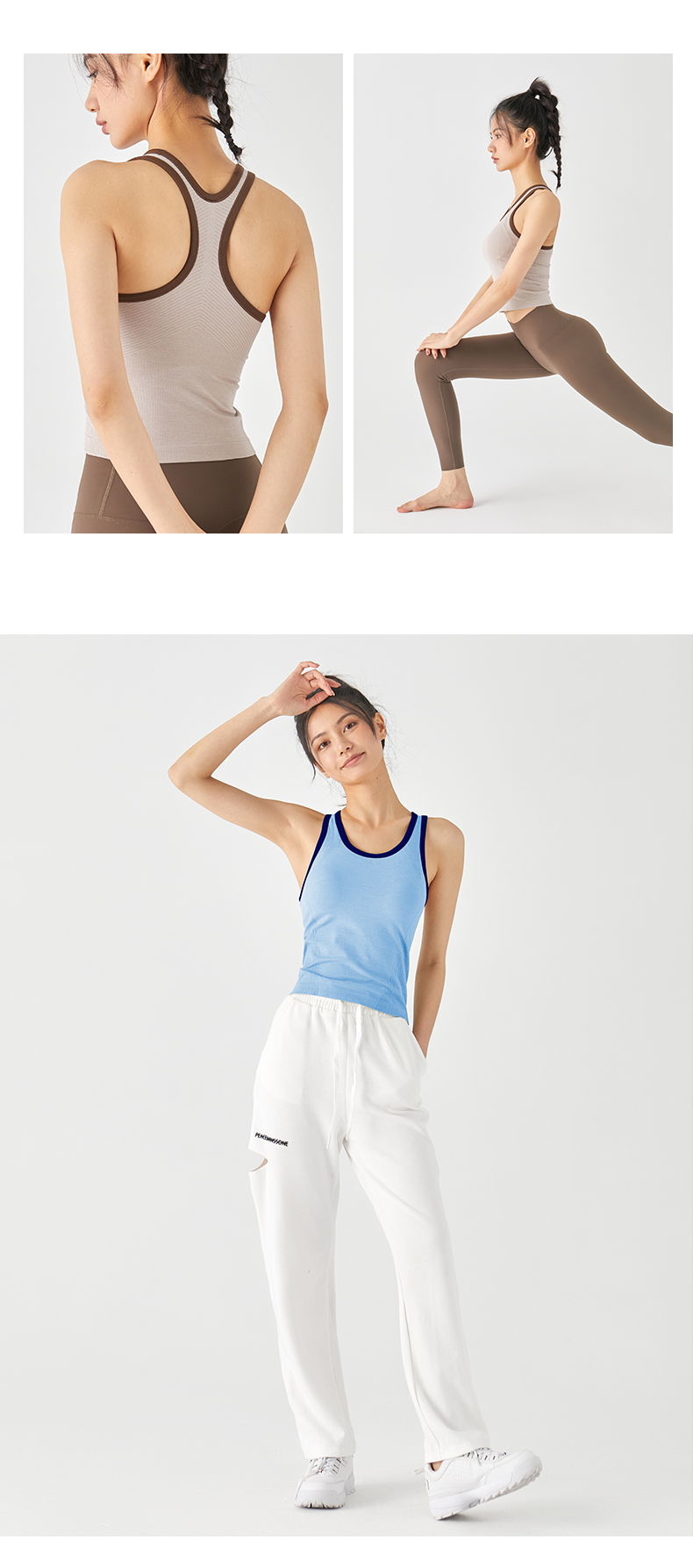 Leorrey乐拉运动内衣女带胸垫工字撞色瑜伽背心无袖健身服外穿