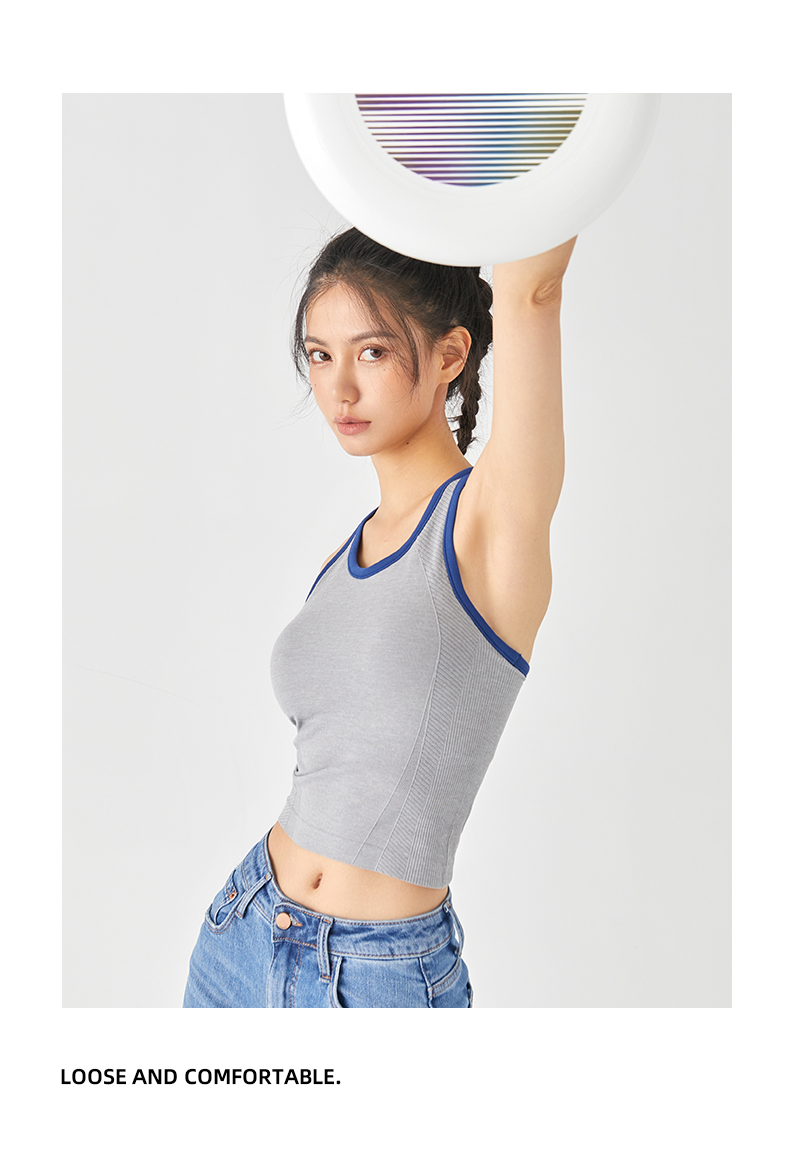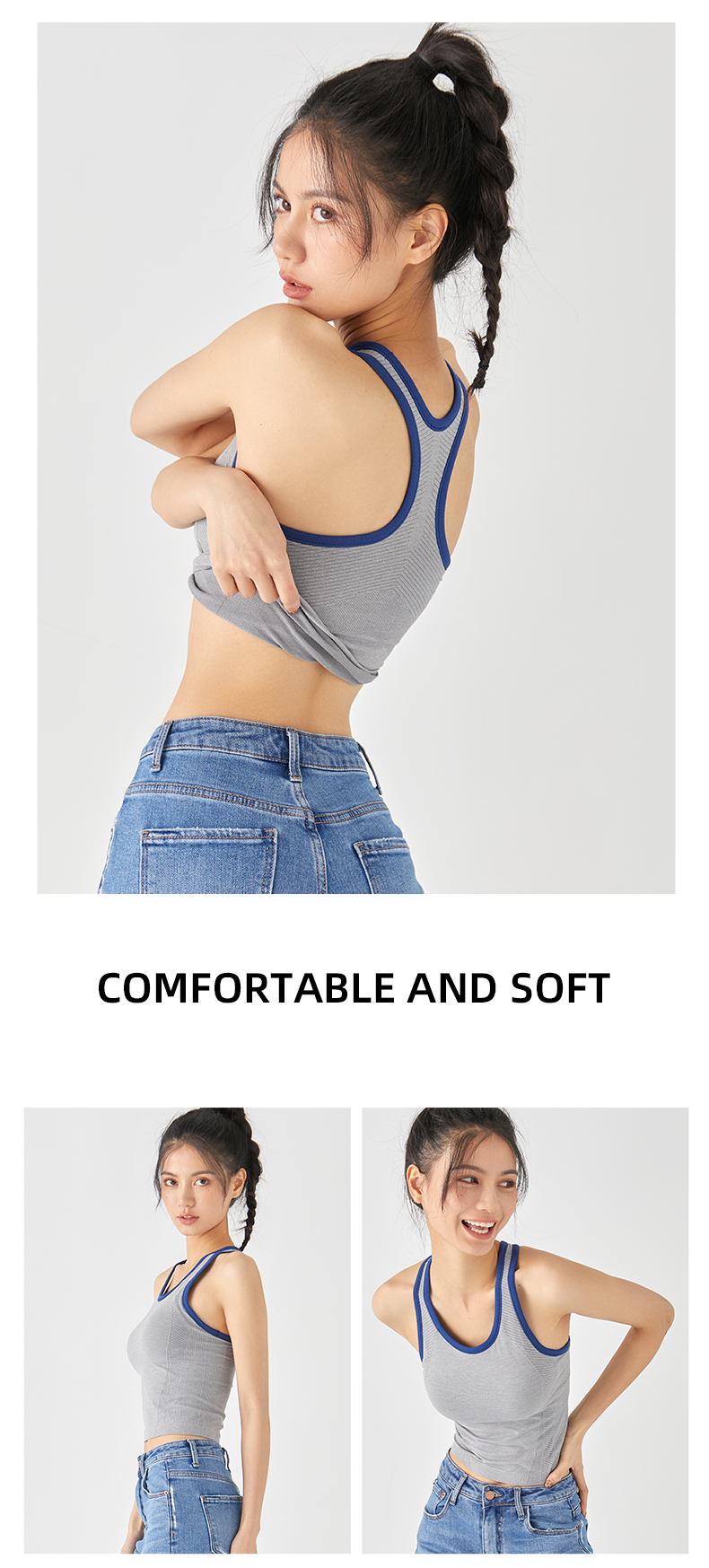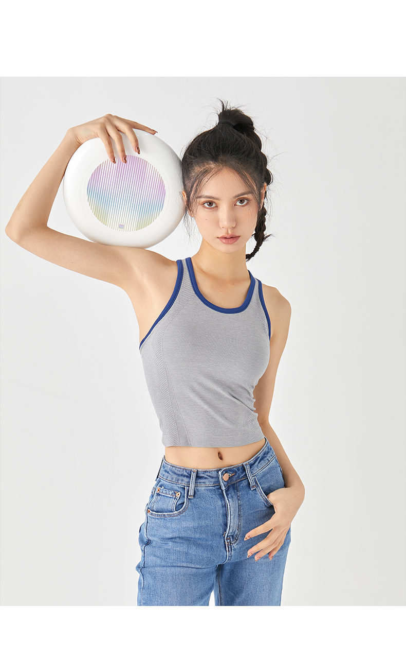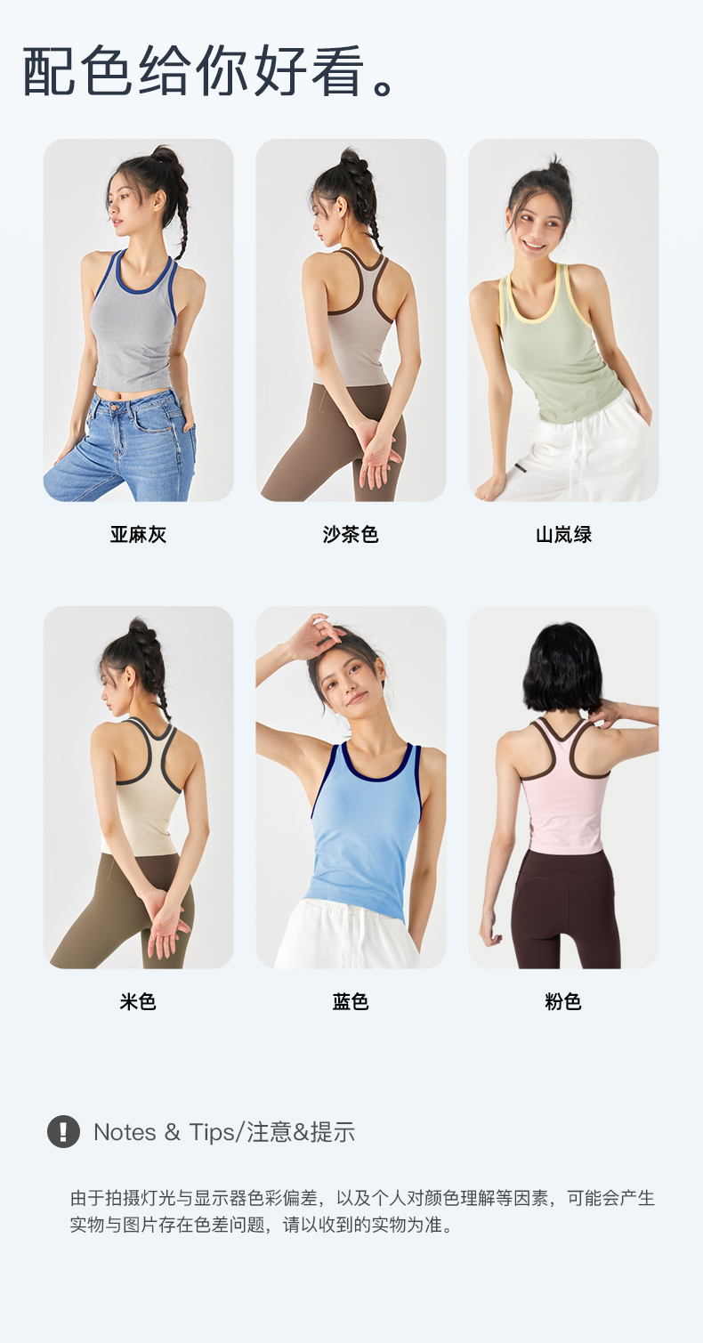 Leorrey乐拉运动内衣女带胸垫工字撞色瑜伽背心无袖健身服外穿