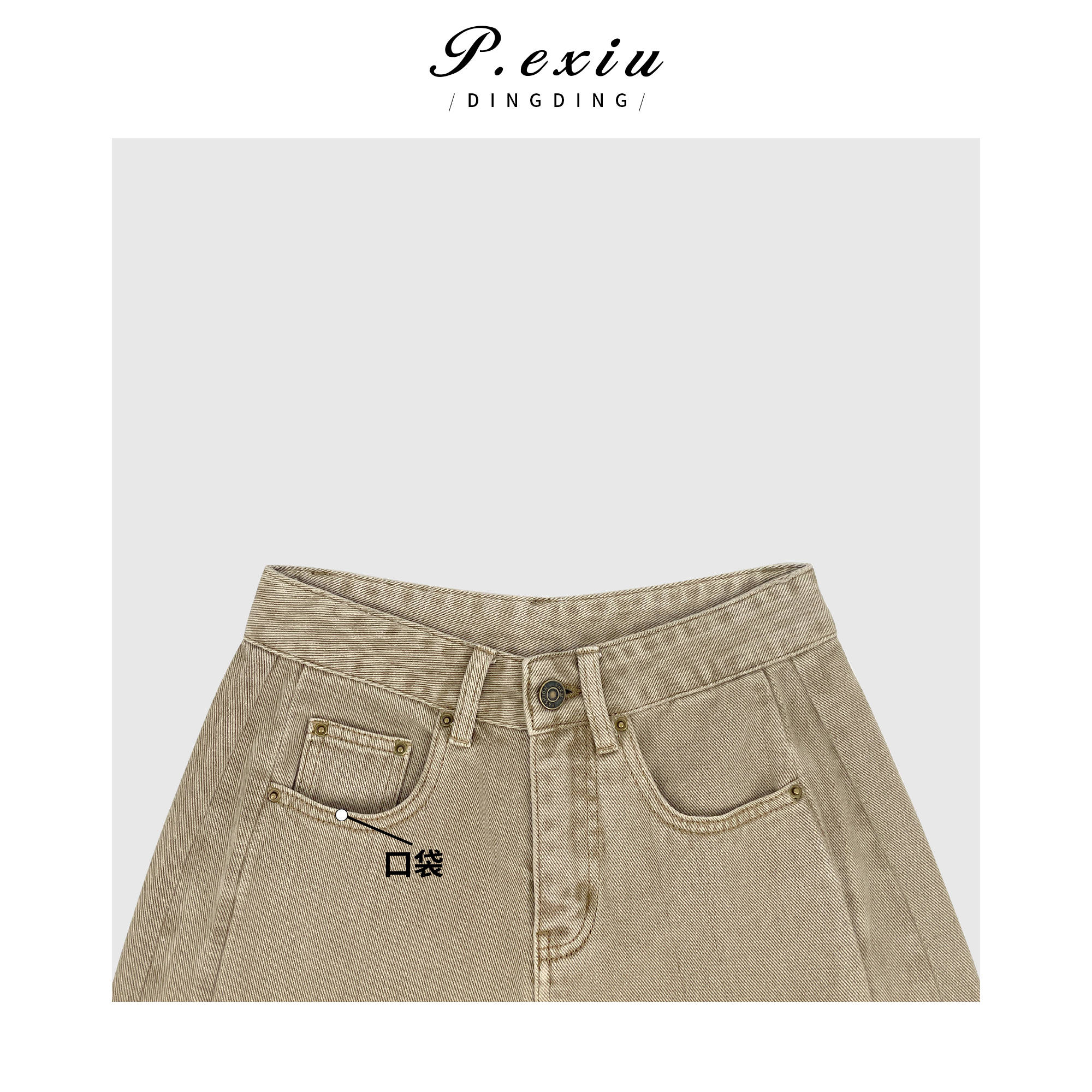 04-3潘依绣丁丁宠粉100%棉美式立体剪裁水洗阔腿牛仔裤 D6175