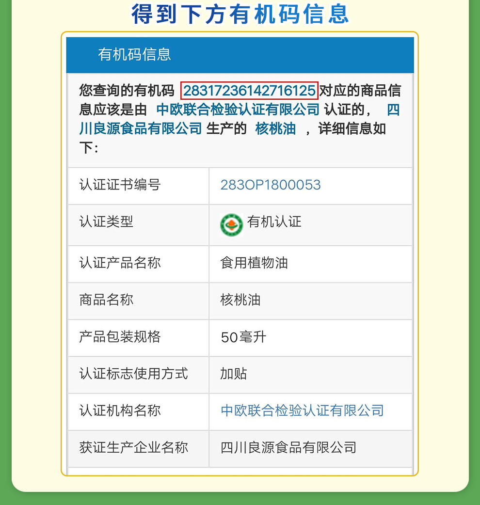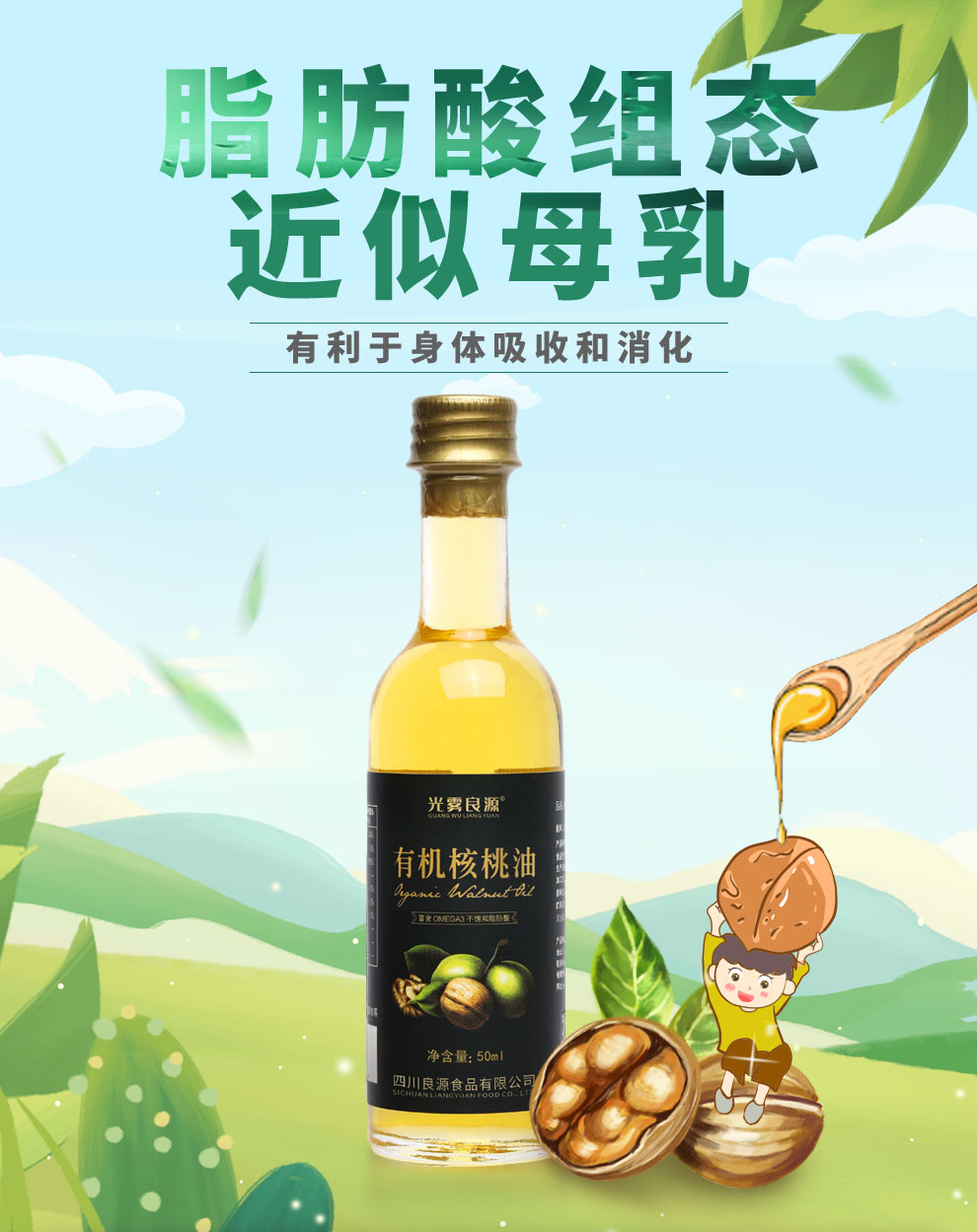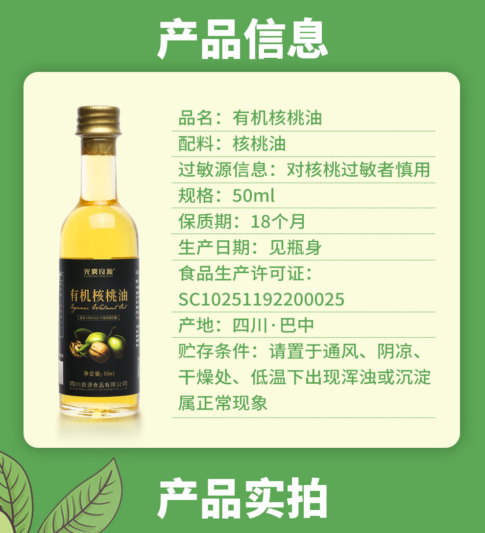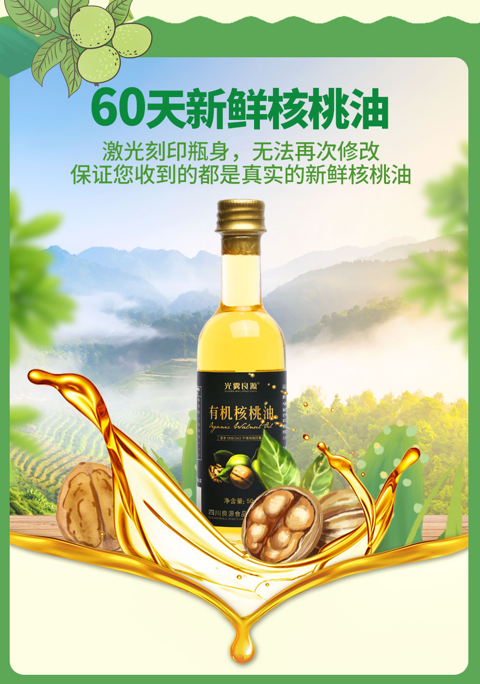 【光雾良源】有机核桃油50ml 物理冷榨有机认证纯核桃油
