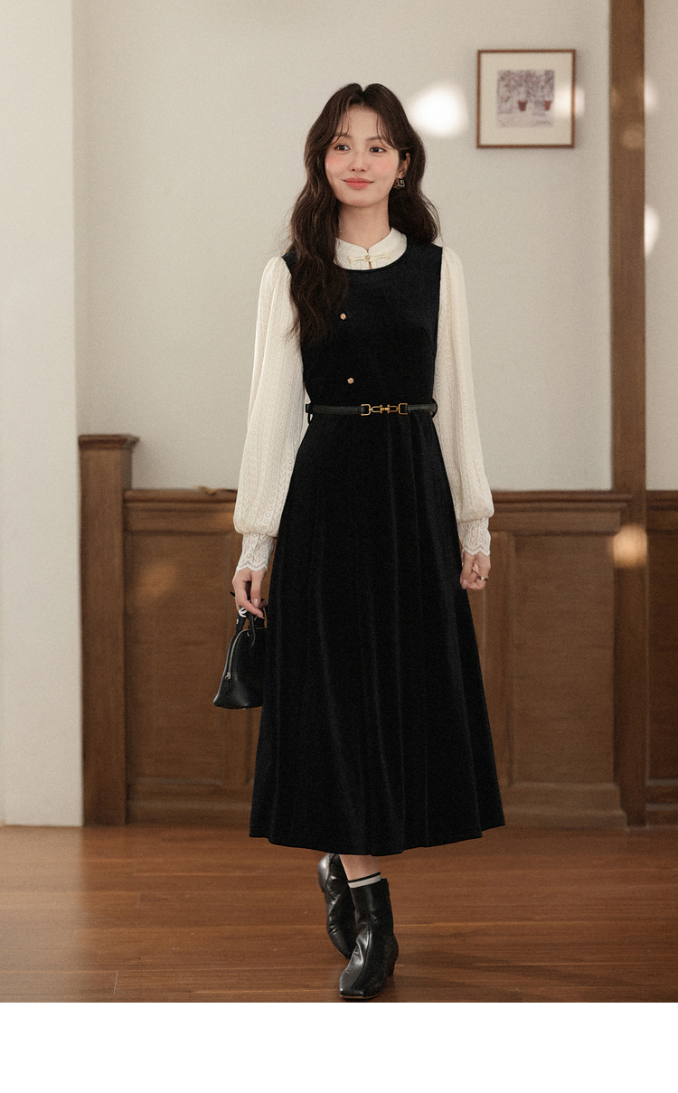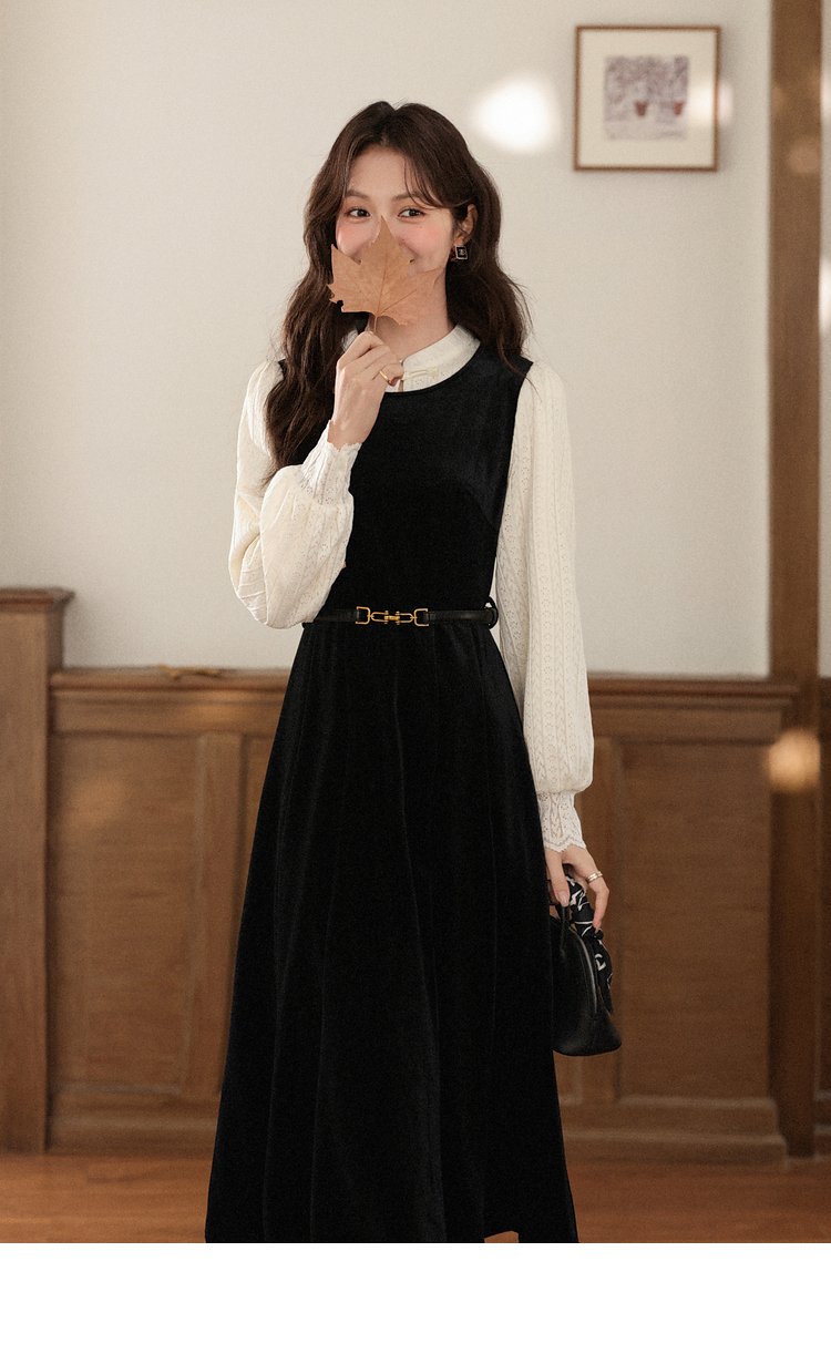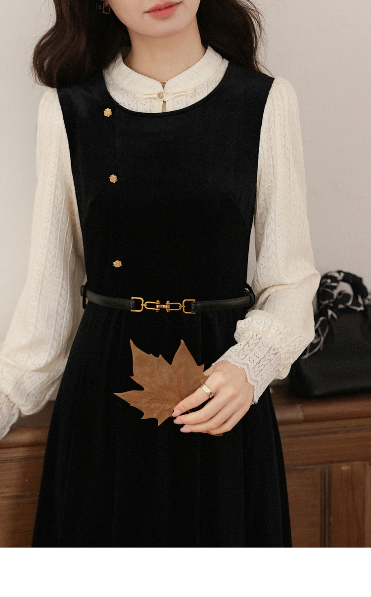 鹿向南「花千语」法式轻奢撞色拼接假两件连衣裙女秋优雅气质长裙