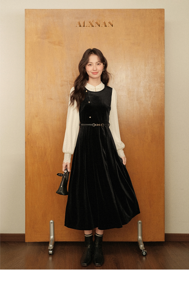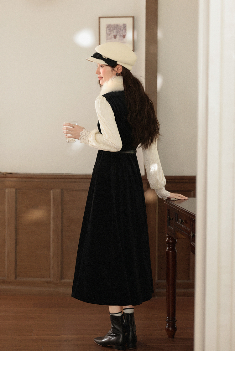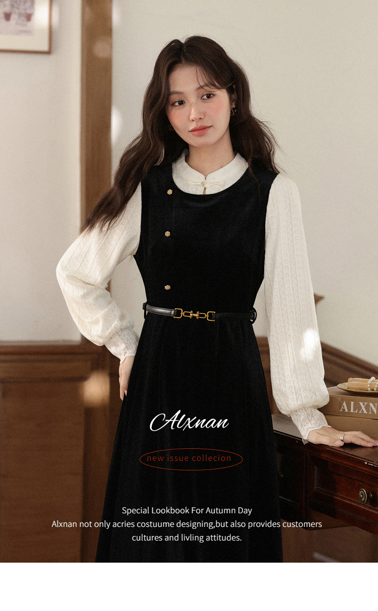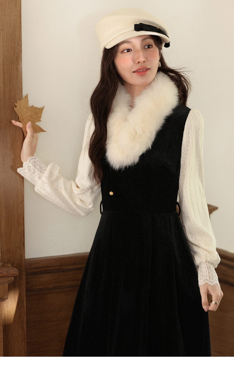 鹿向南「花千语」法式轻奢撞色拼接假两件连衣裙女秋优雅气质长裙