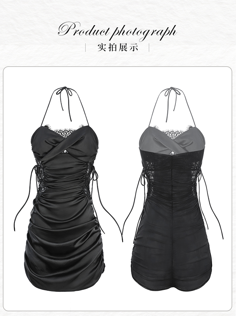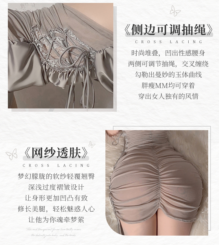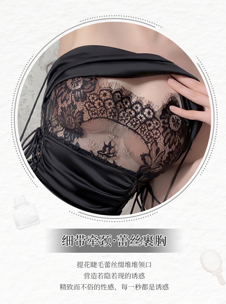 【伊性坊-情趣内衣】霏慕 缎面蕾丝饰胸抽褶包臀裙6609