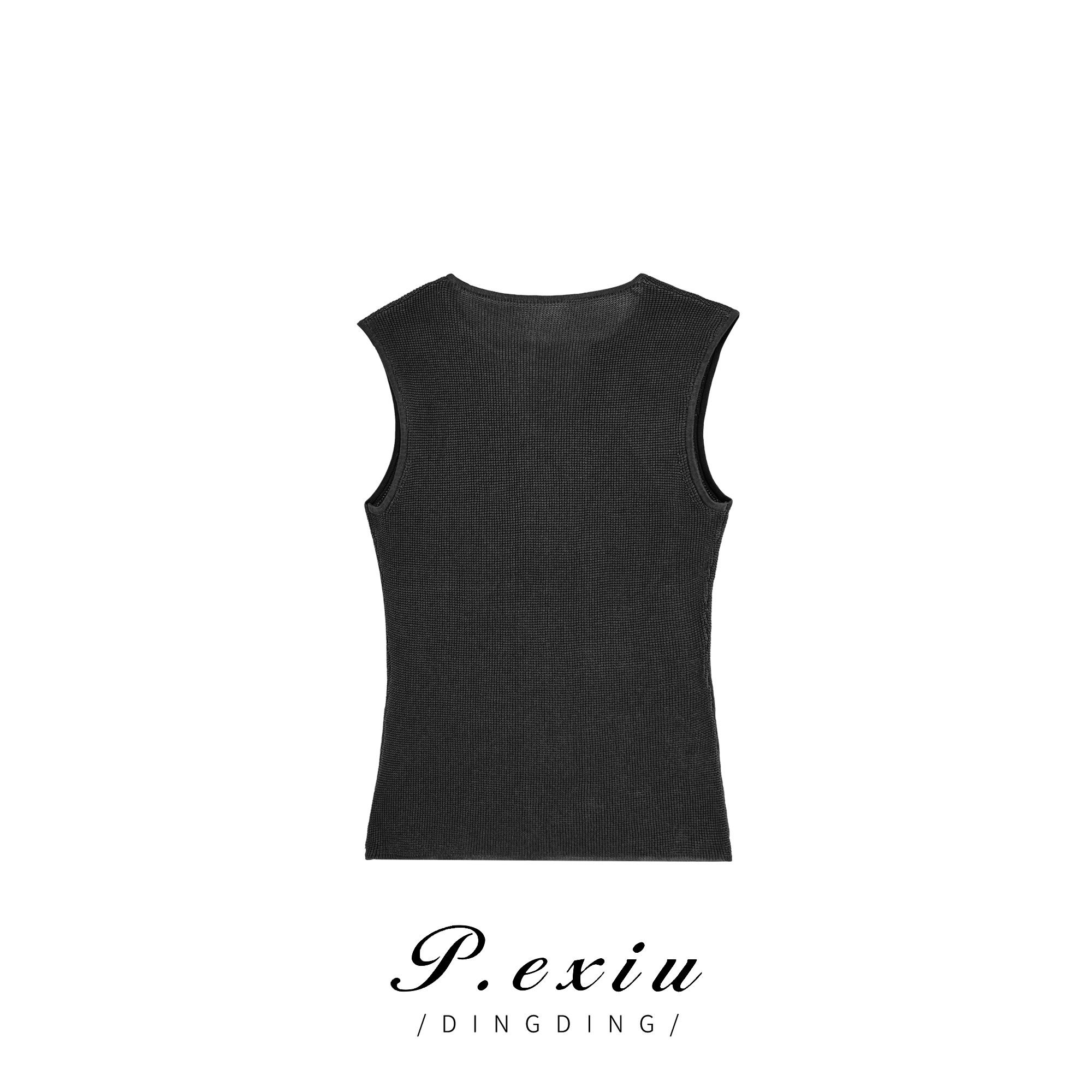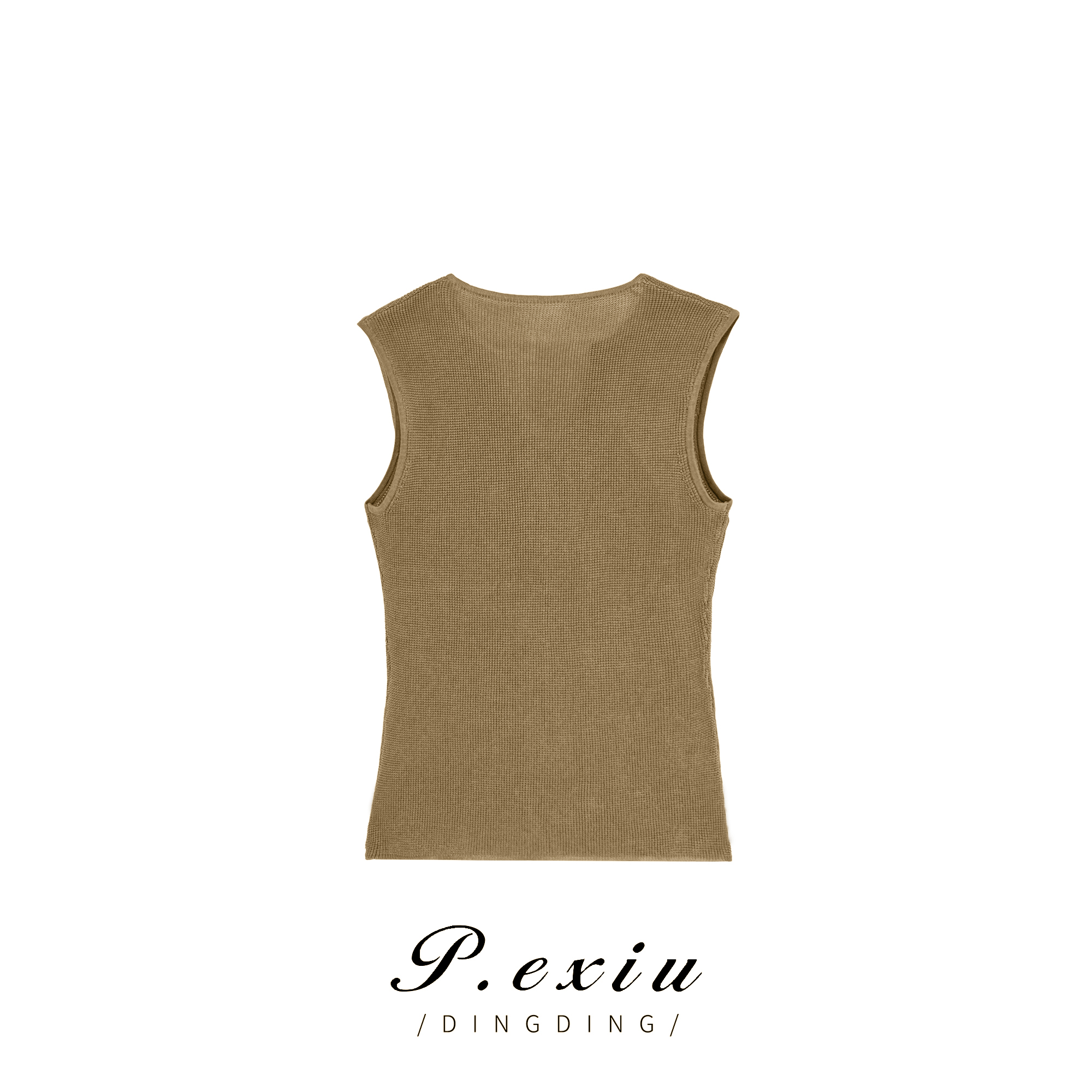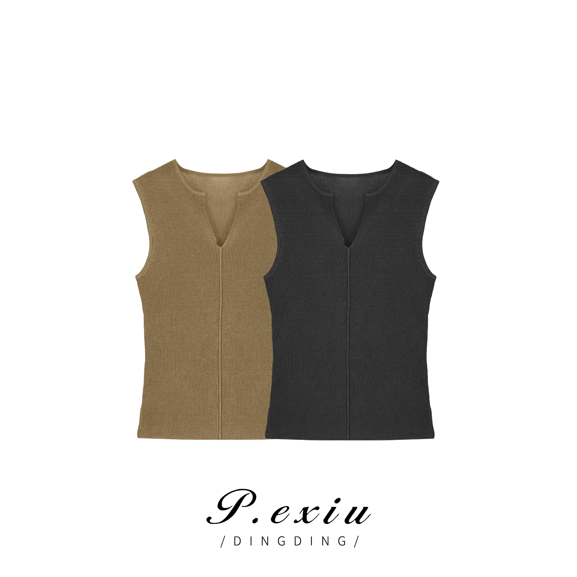 03-4潘依绣丁丁宠粉设计款斜领简约百搭气质无袖背心 Q6658