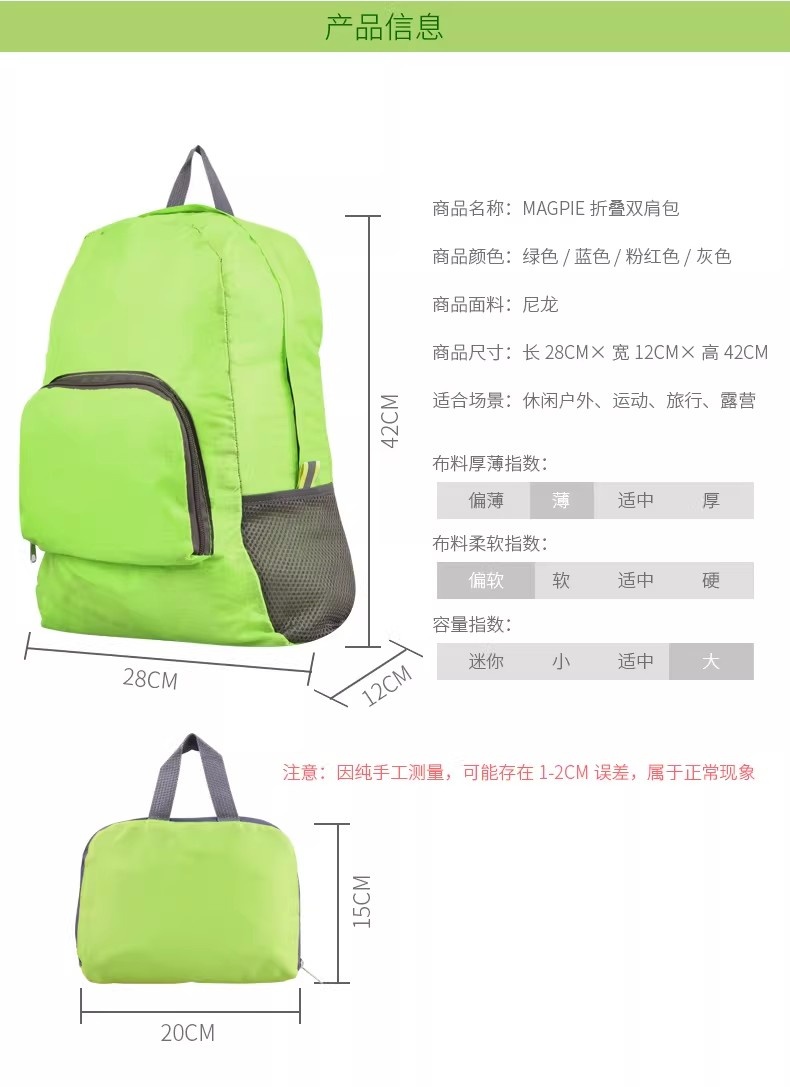 便携式皮肤包 可收纳折叠双肩包防水登山运动户外旅行背包