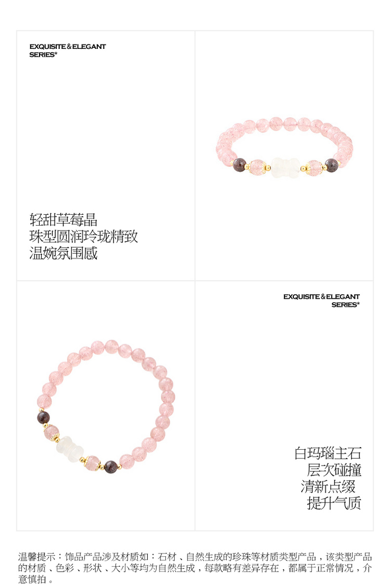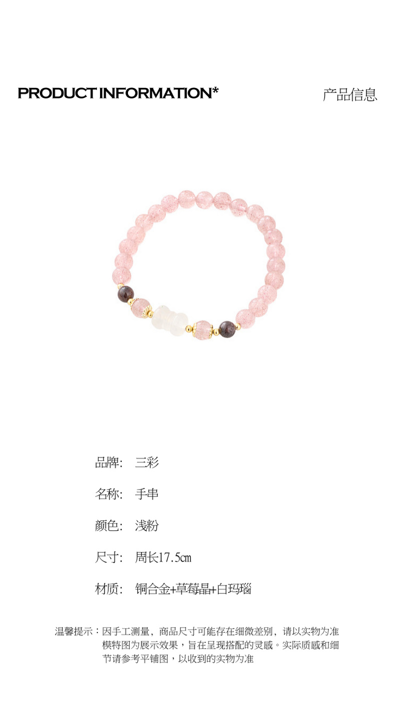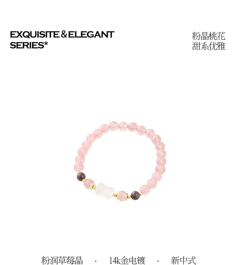 三彩2026新款国风粉润草莓晶白玛瑙手串聚财纳福温婉小众简约送礼