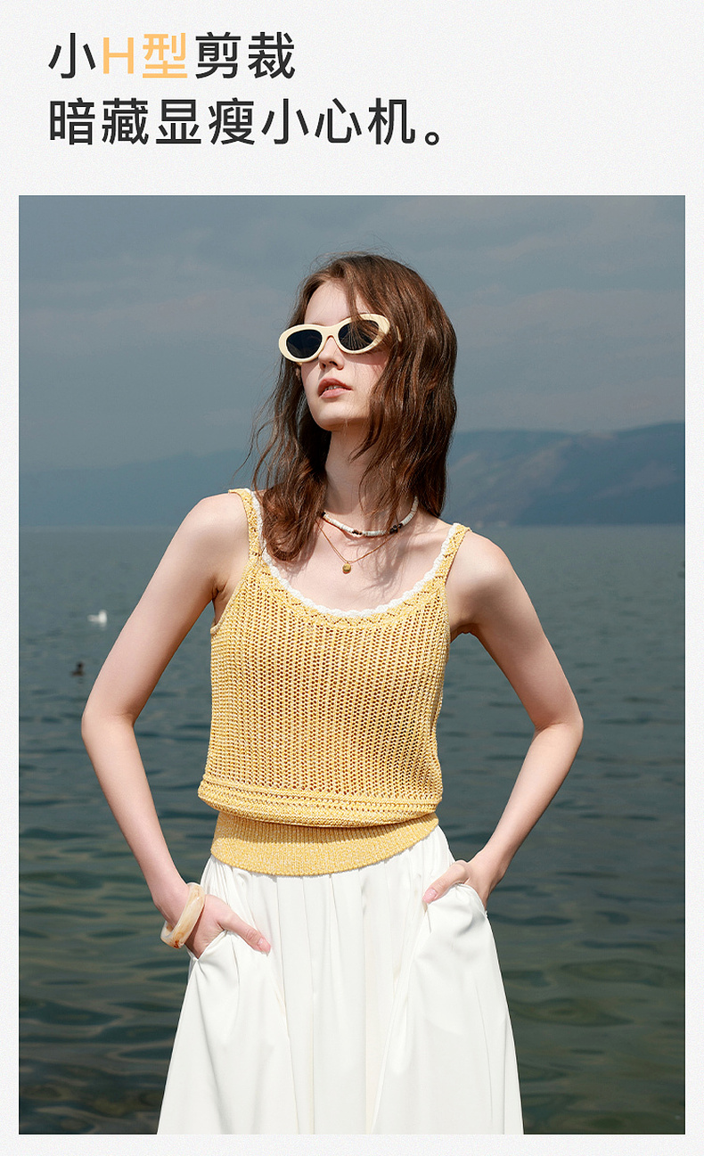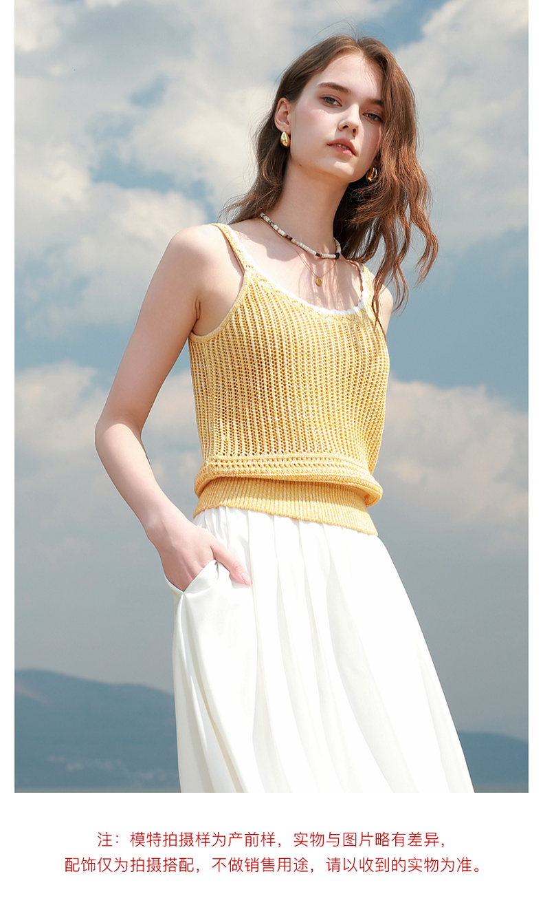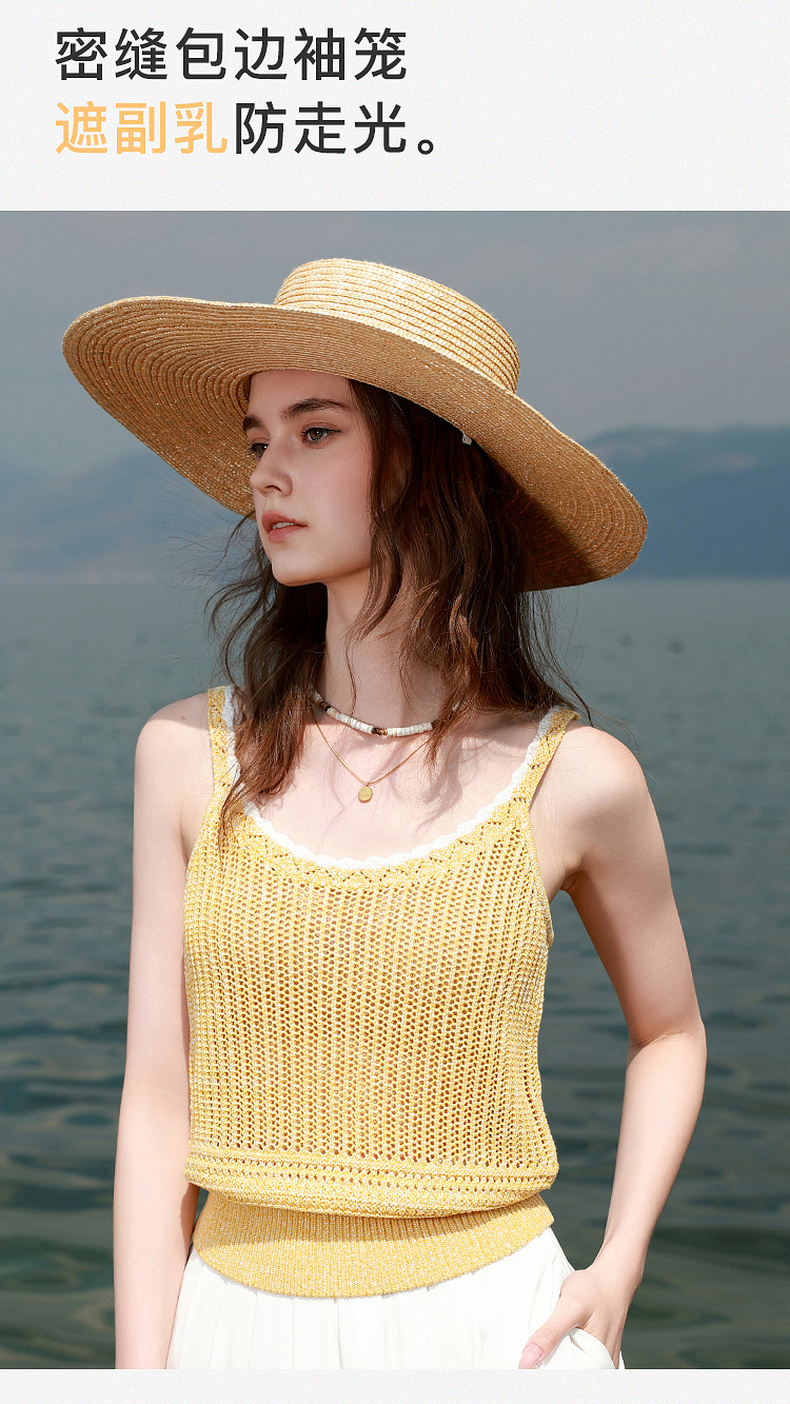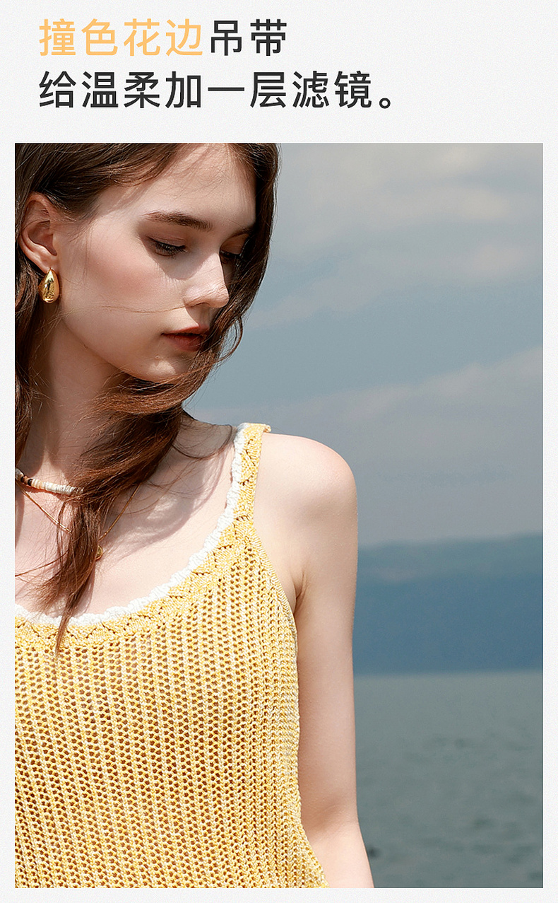 三彩2025夏季新款镂空针织吊带无袖背心短款内搭上衣套头度假M