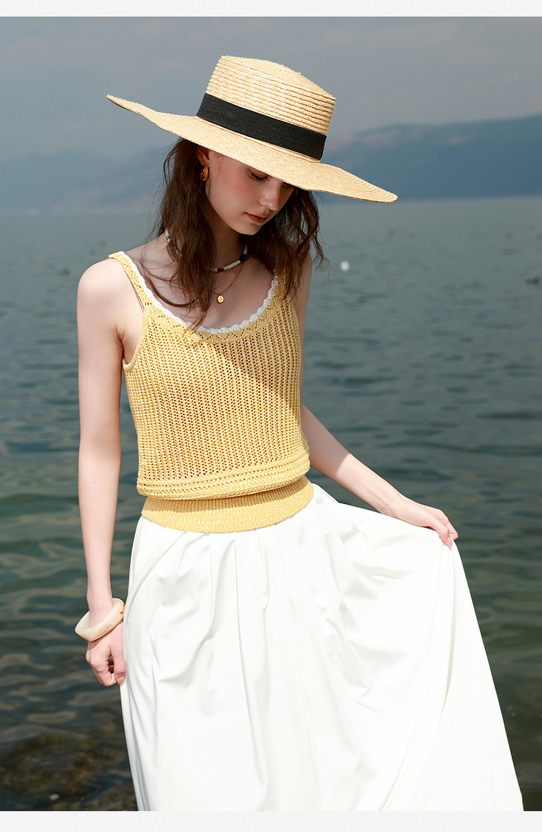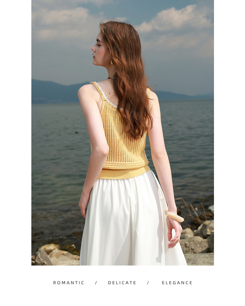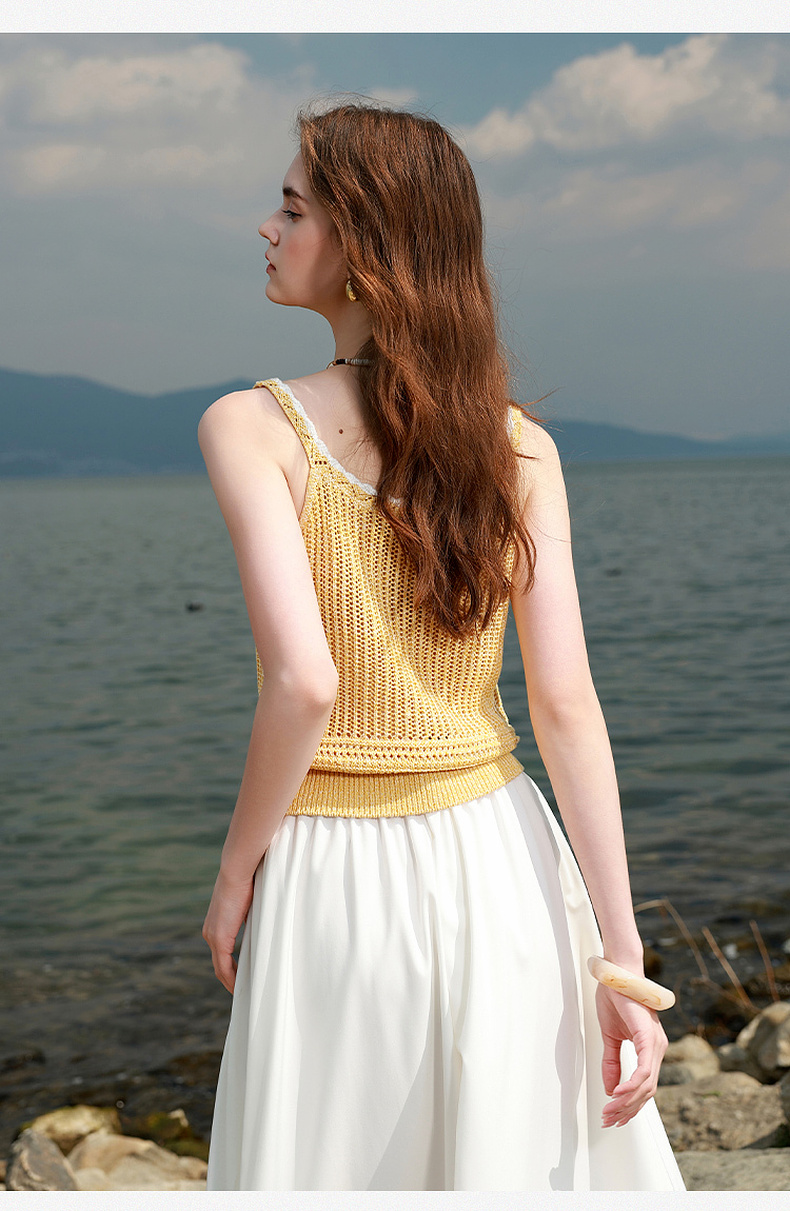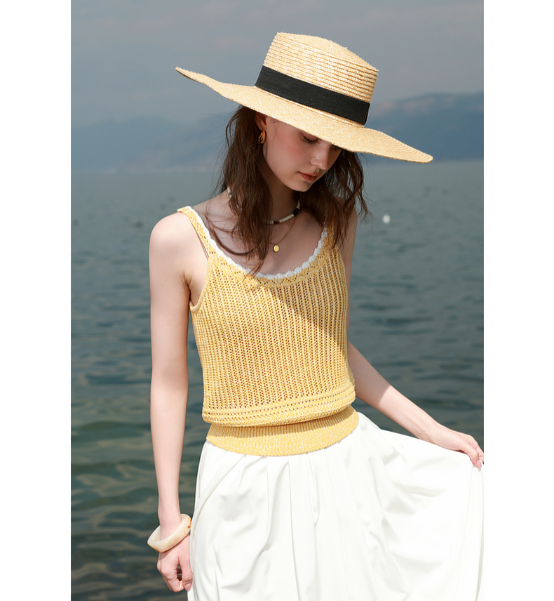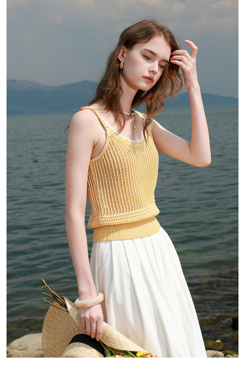 三彩2025夏季新款镂空针织吊带无袖背心短款内搭上衣套头度假M