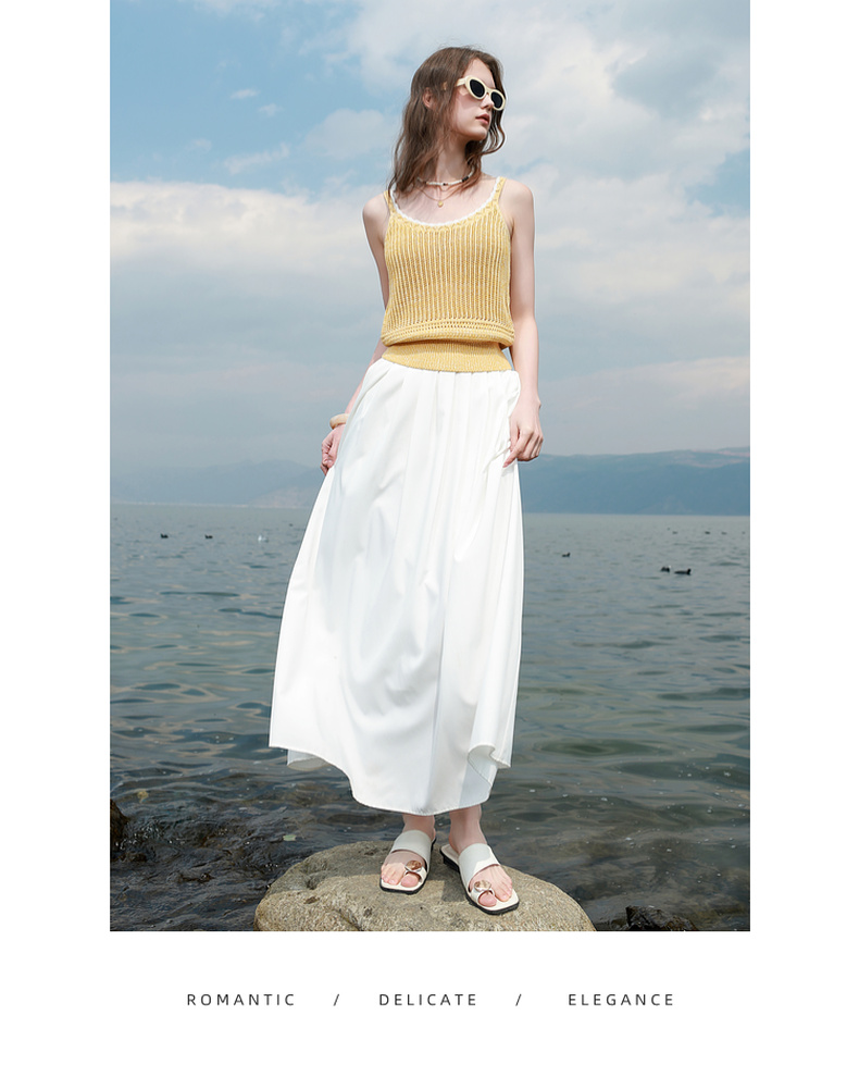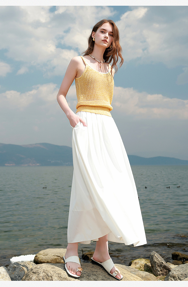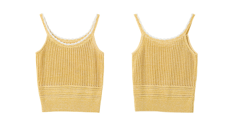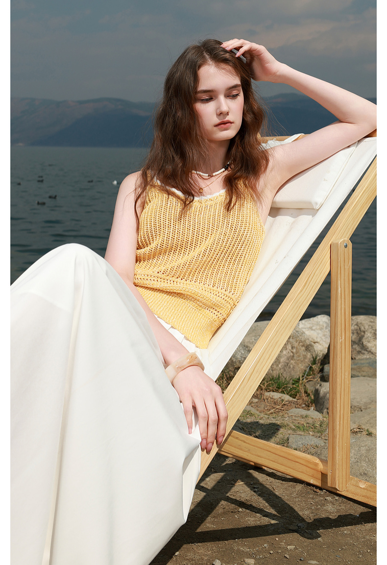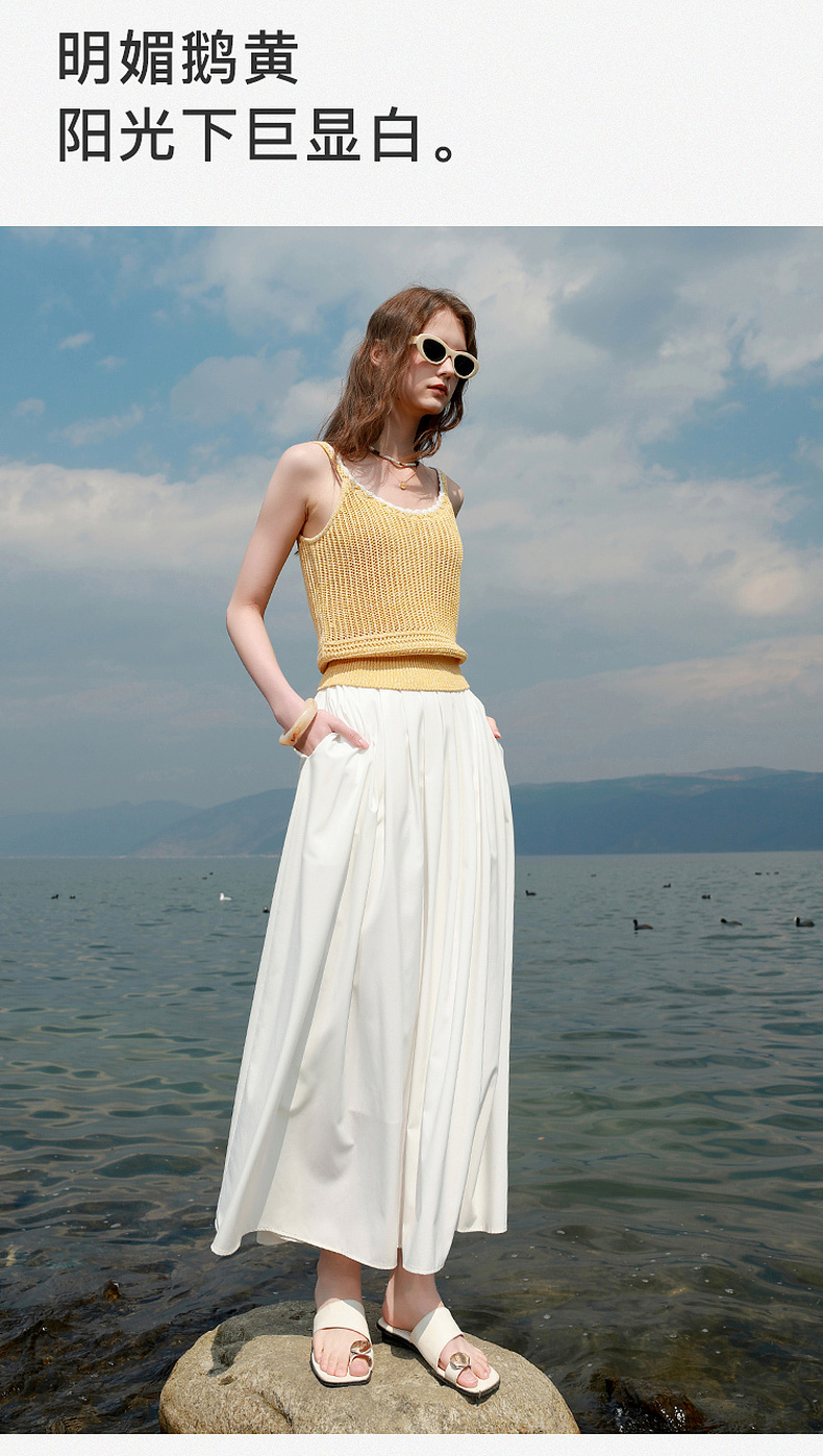 三彩2025夏季新款镂空针织吊带无袖背心短款内搭上衣套头度假M