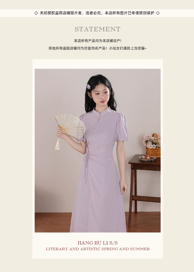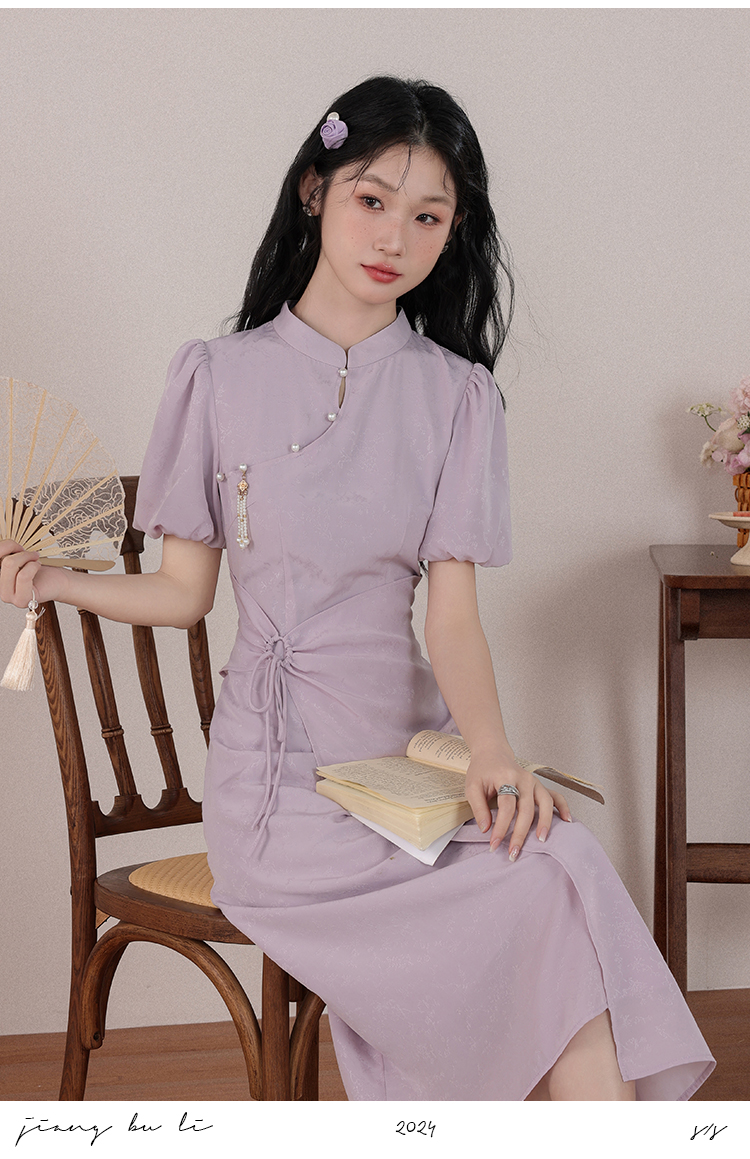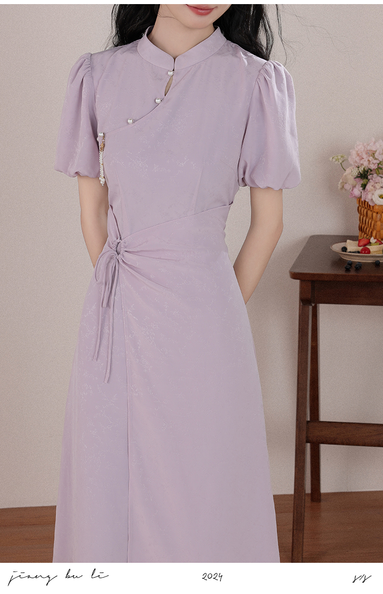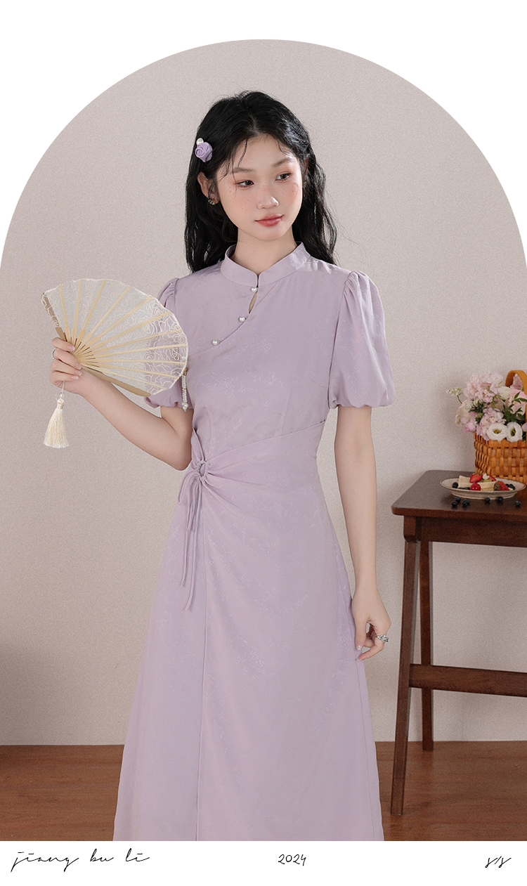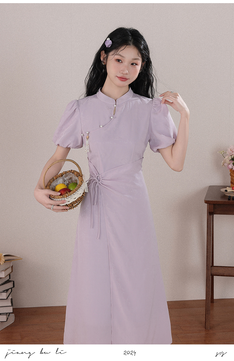 鹿向南【月光流萤】夏季紫色新中式连衣裙女改良旗袍收腰国风长裙