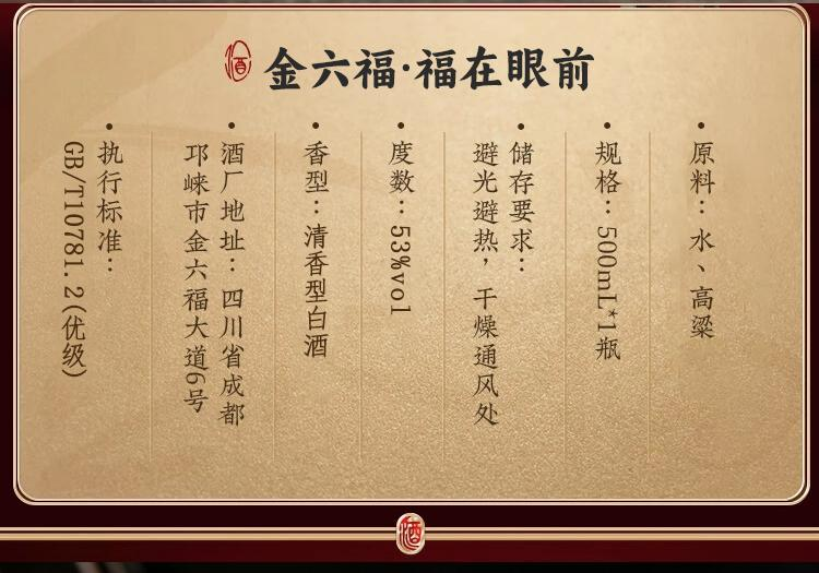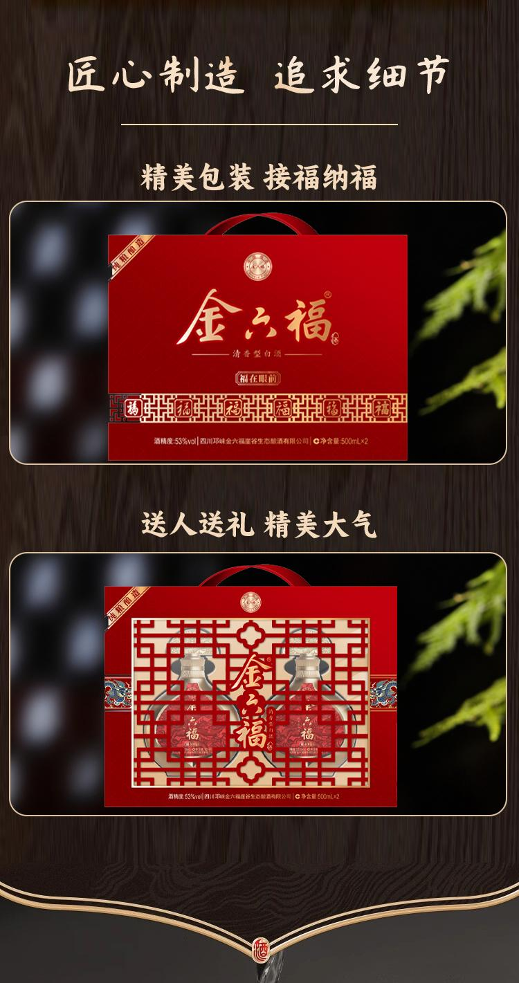 【新品礼盒】金六福 福在眼前 清香型白酒 53度 500ml*2瓶礼盒装 500ml*2*3整箱