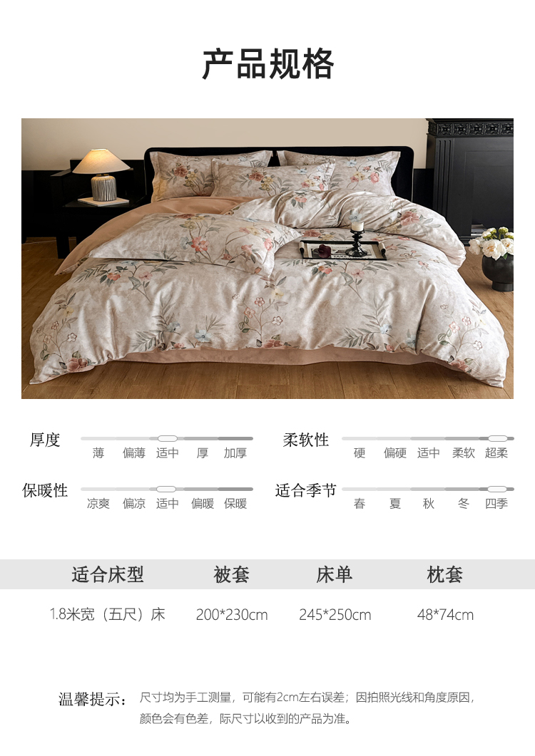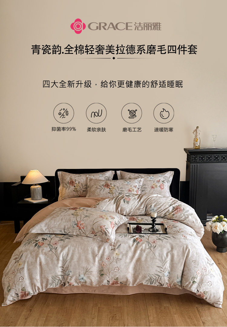 洁丽雅(Grace)青瓷韵.全棉轻奢美拉德系磨毛四件套JLY25803