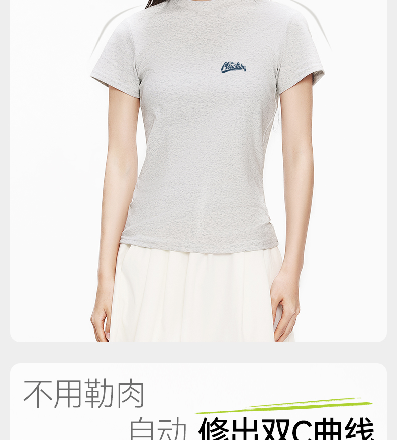 「棉的美学」夏季短款正肩T恤2025新款透气修身显瘦休闲圆领上衣
