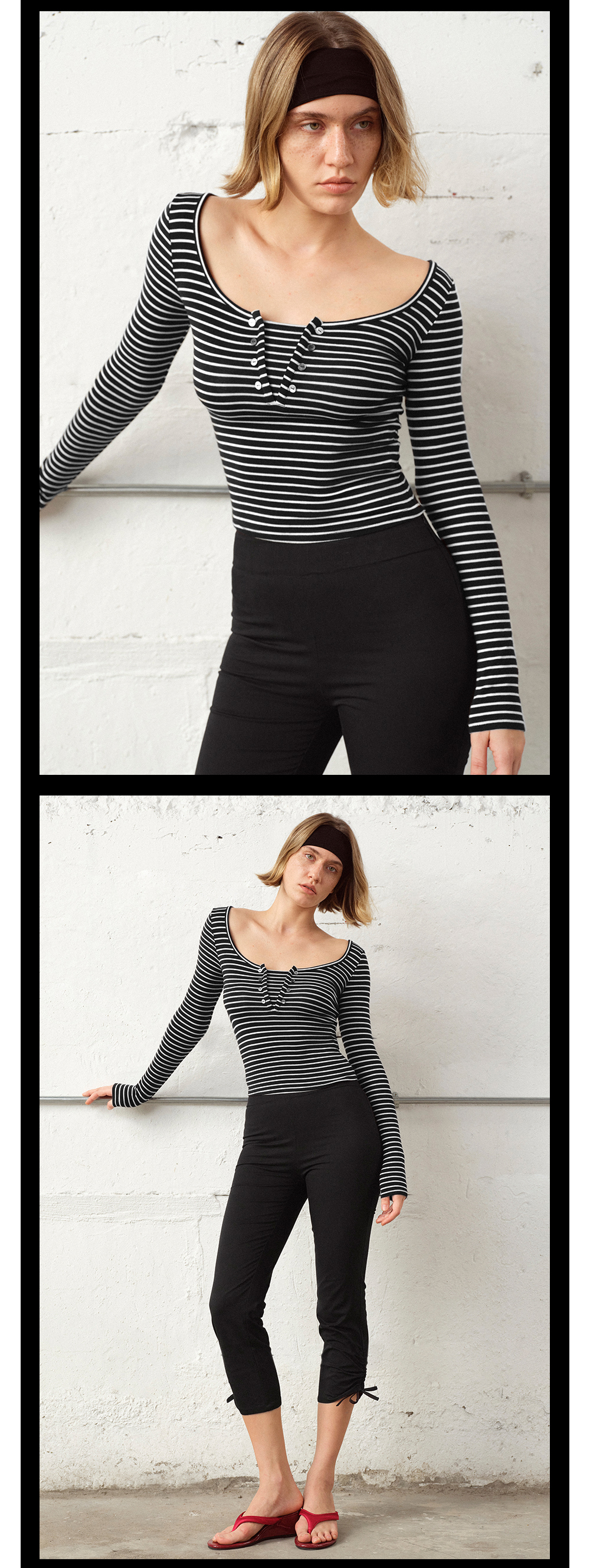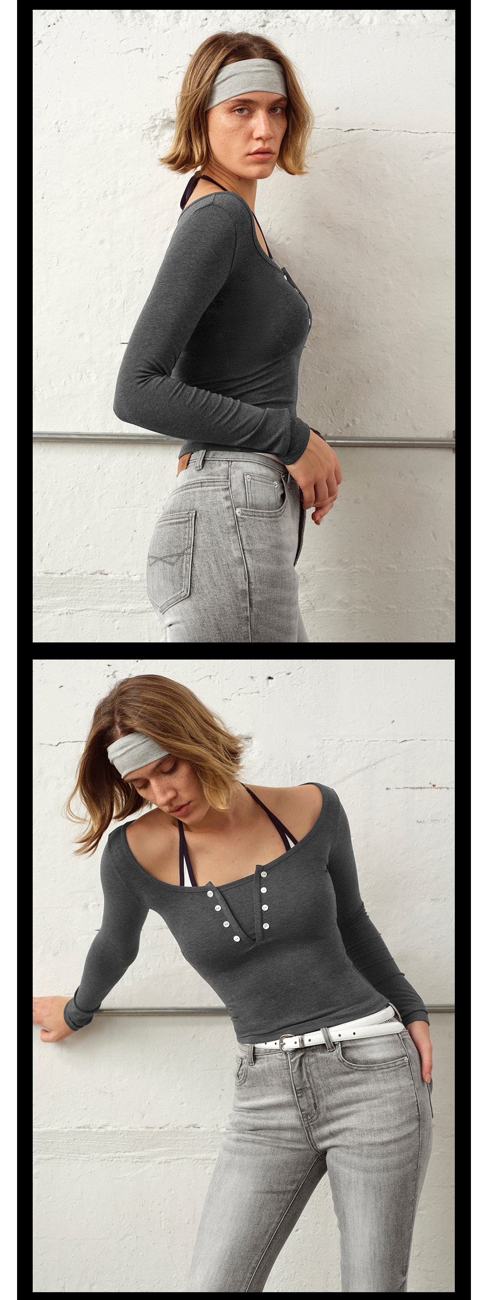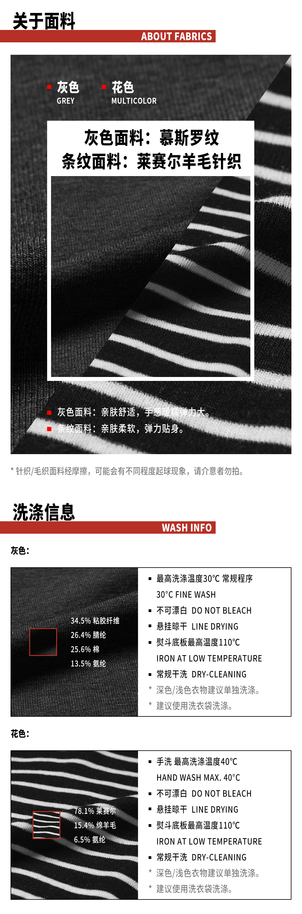 TR她热 松弛刻度 灰色条纹软糯假两件基础款百搭弹力打底衫上衣