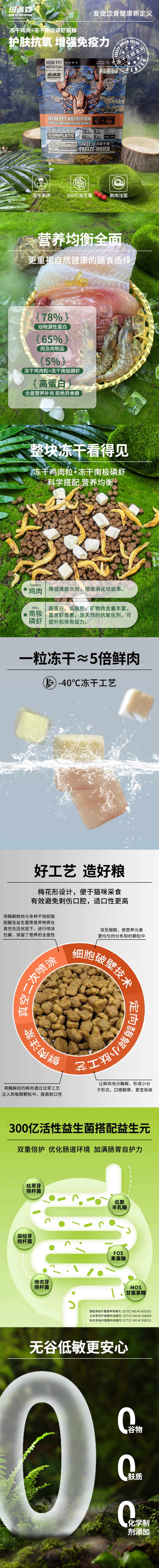 纽派森全价冻干猫粮猫咪主食无谷生鲜肉鸡肉冻干成猫幼猫营养增肥