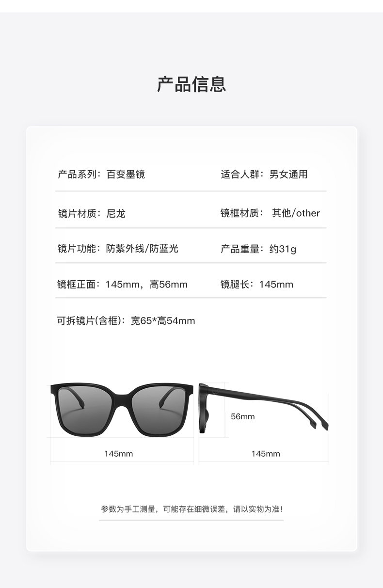 【品牌直发-福利特惠】EYECROXX乘号百变可拆卸镜片防紫外线偏光墨镜 百变换片1+2 EX22119专利百变