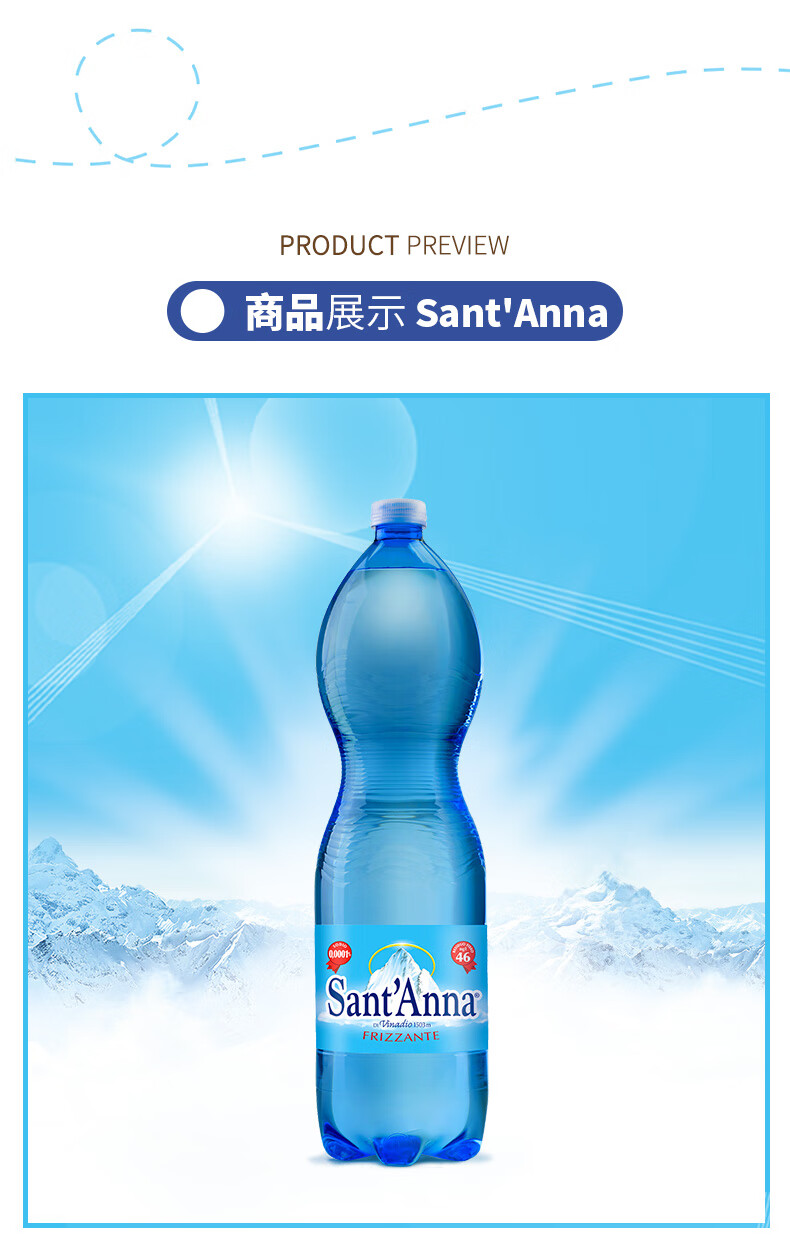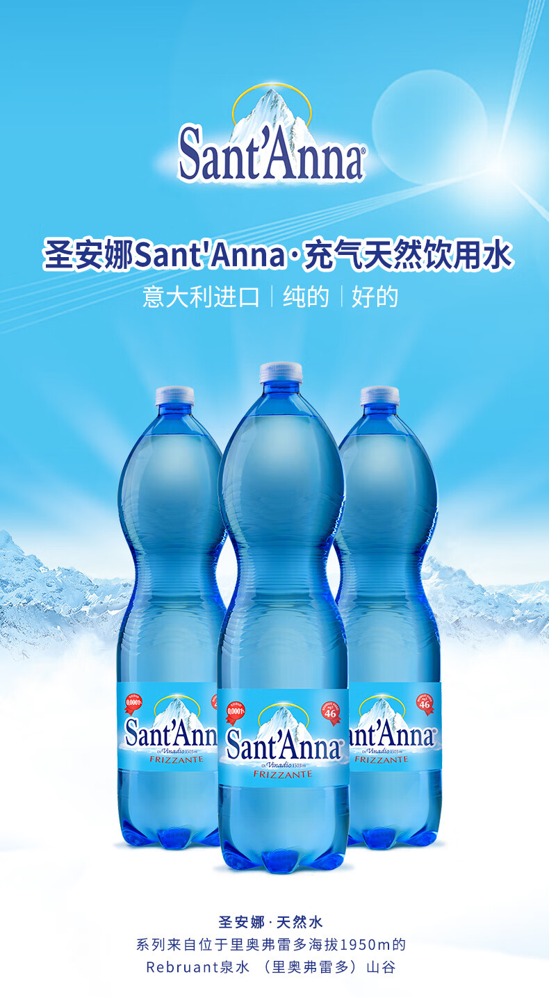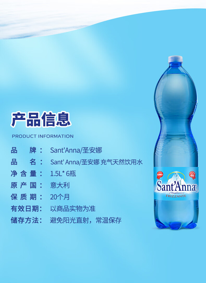 圣安娜(SantaposAnna)充气天然饮用水1.5L*6 整提装意大利原装进口高海拔泉水气泡水_ymt