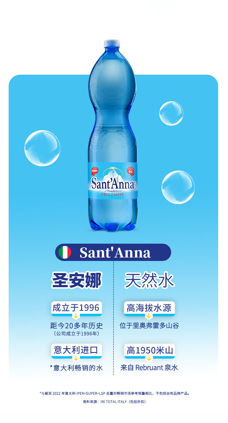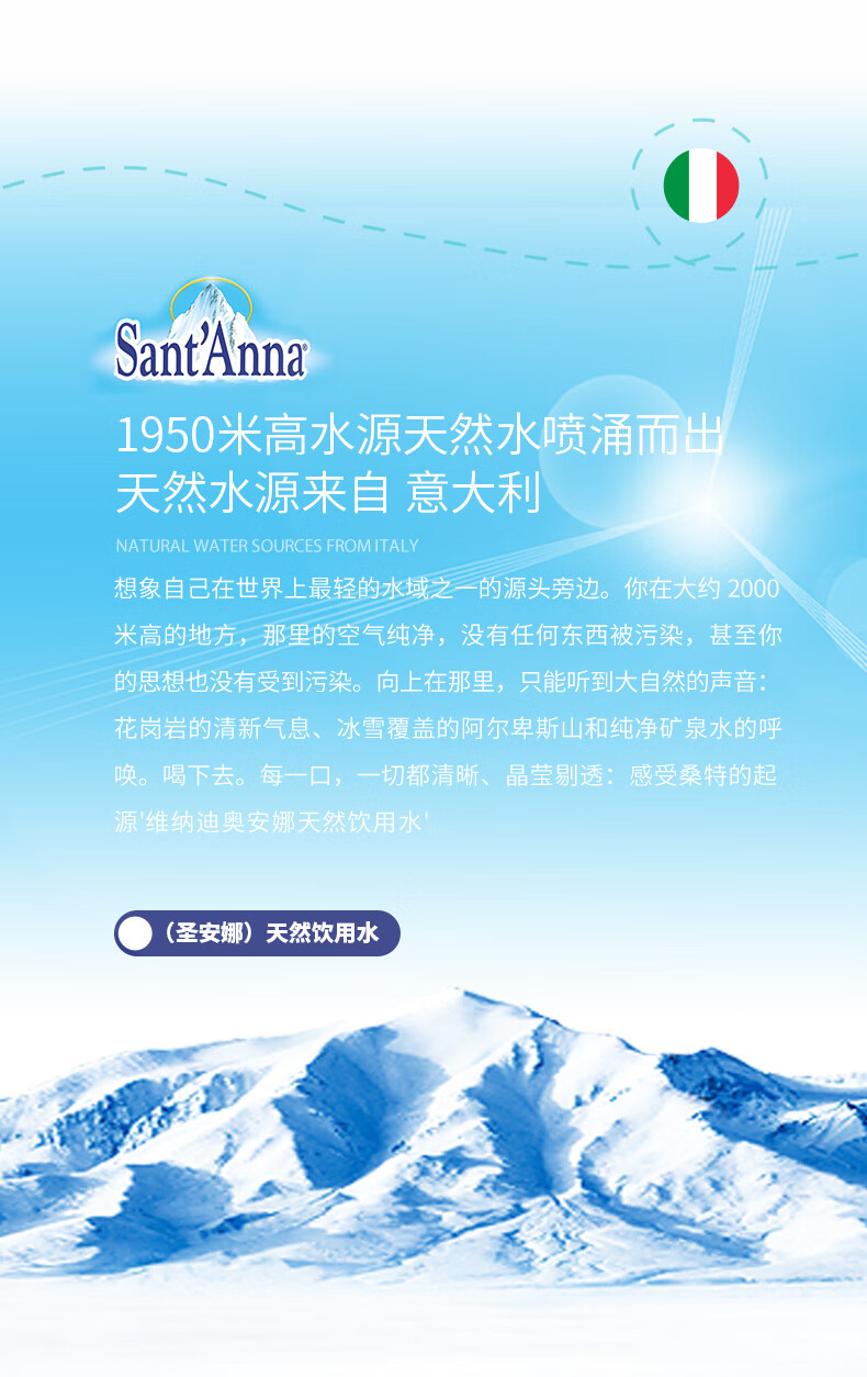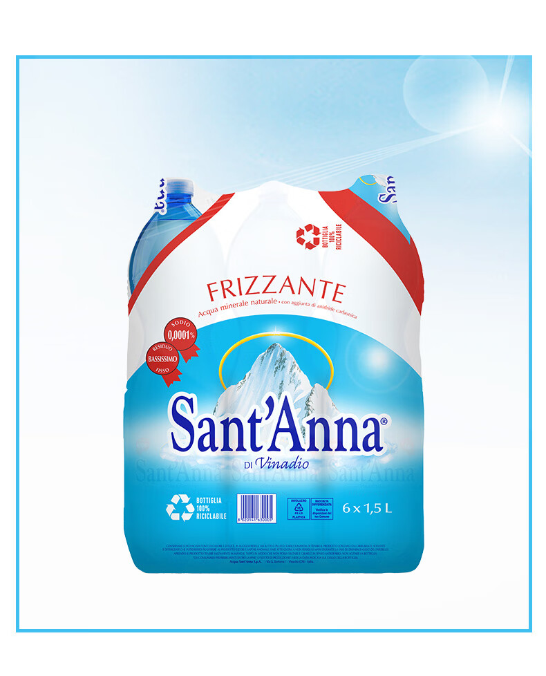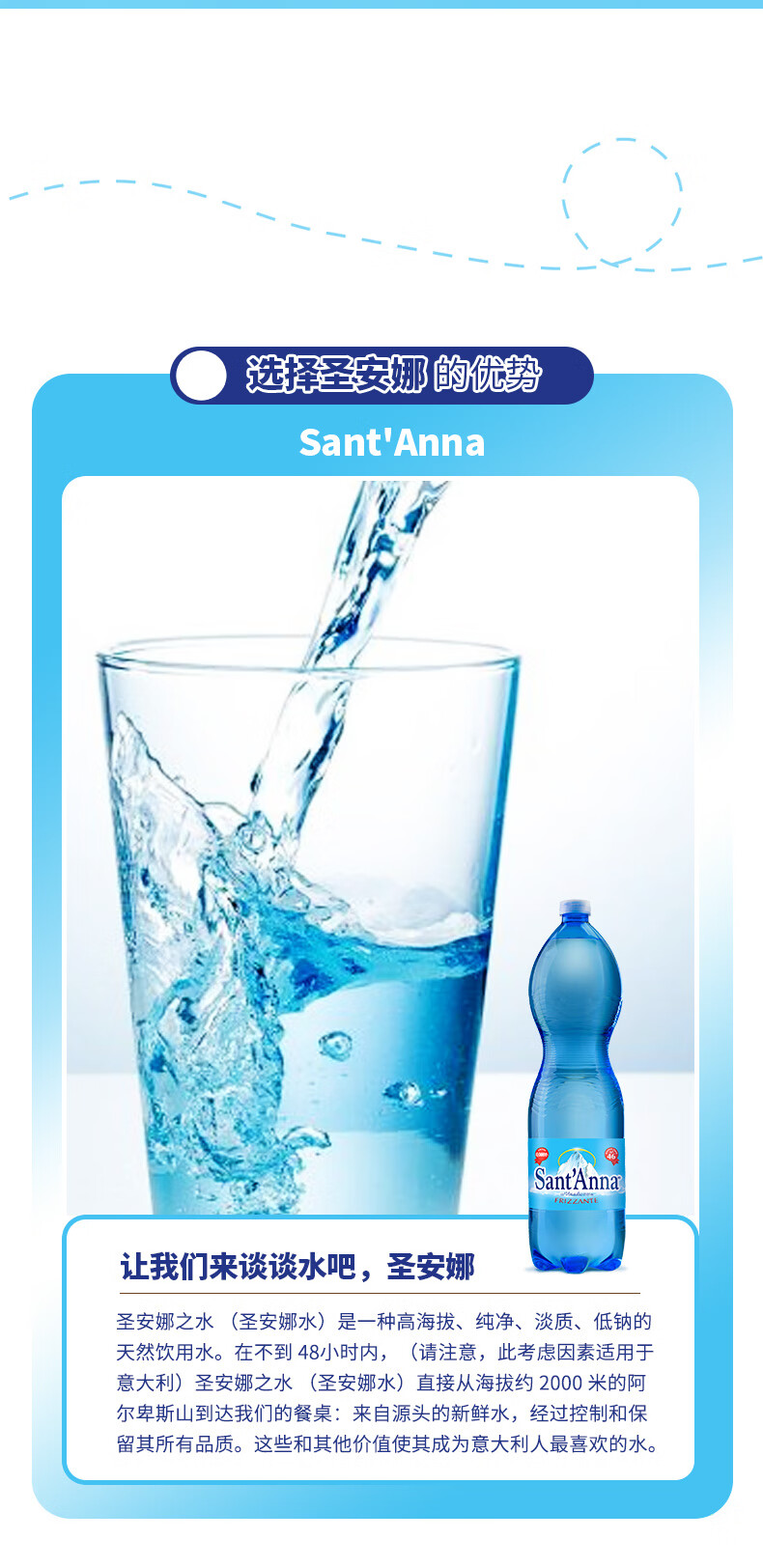 圣安娜(SantaposAnna)充气天然饮用水1.5L*6 整提装意大利原装进口高海拔泉水气泡水_ymt