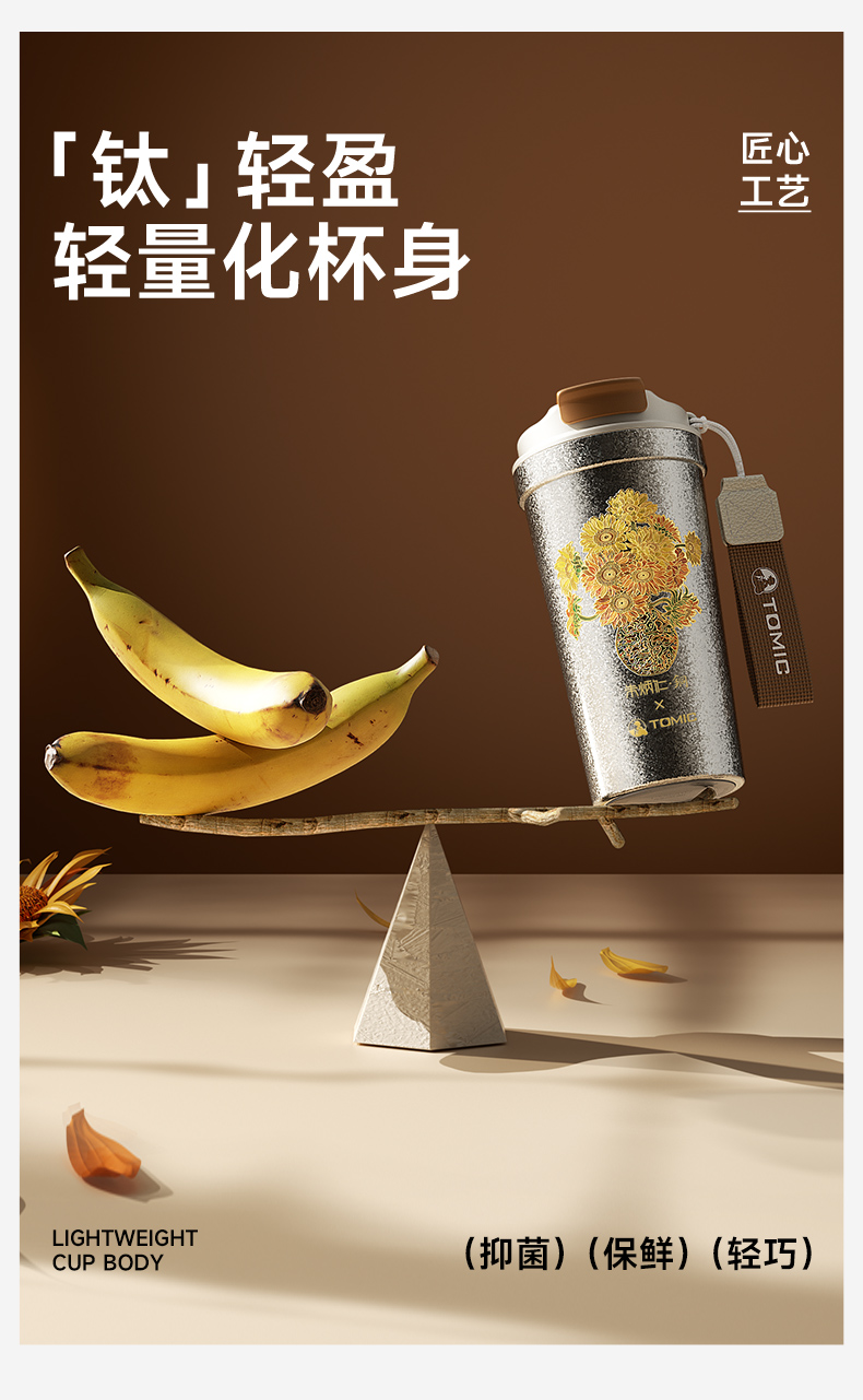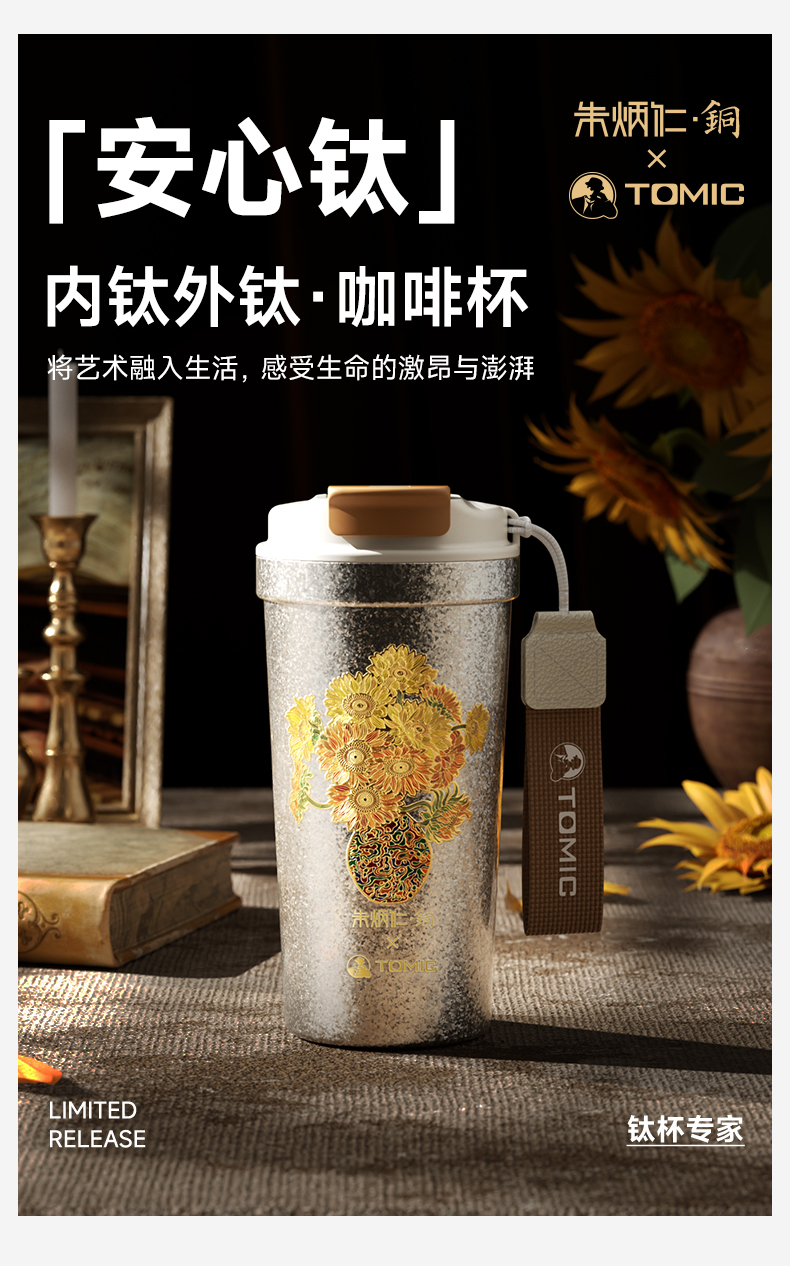 tomic特美刻 纯钛咖啡杯2025新款 朱炳仁联名钛杯 520ml 便携保温保冷水杯