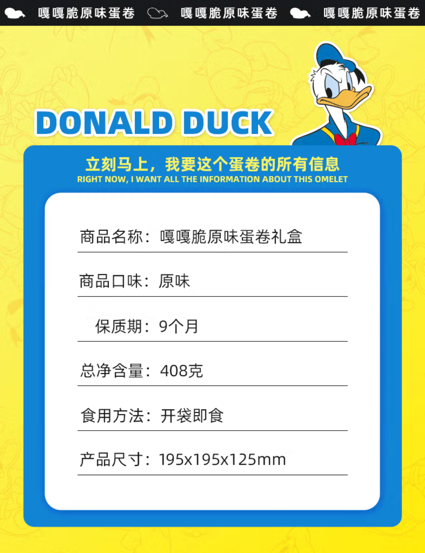 迪士尼 嘎嘎脆原味蛋卷礼盒 408g