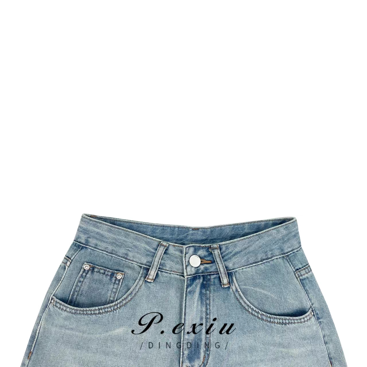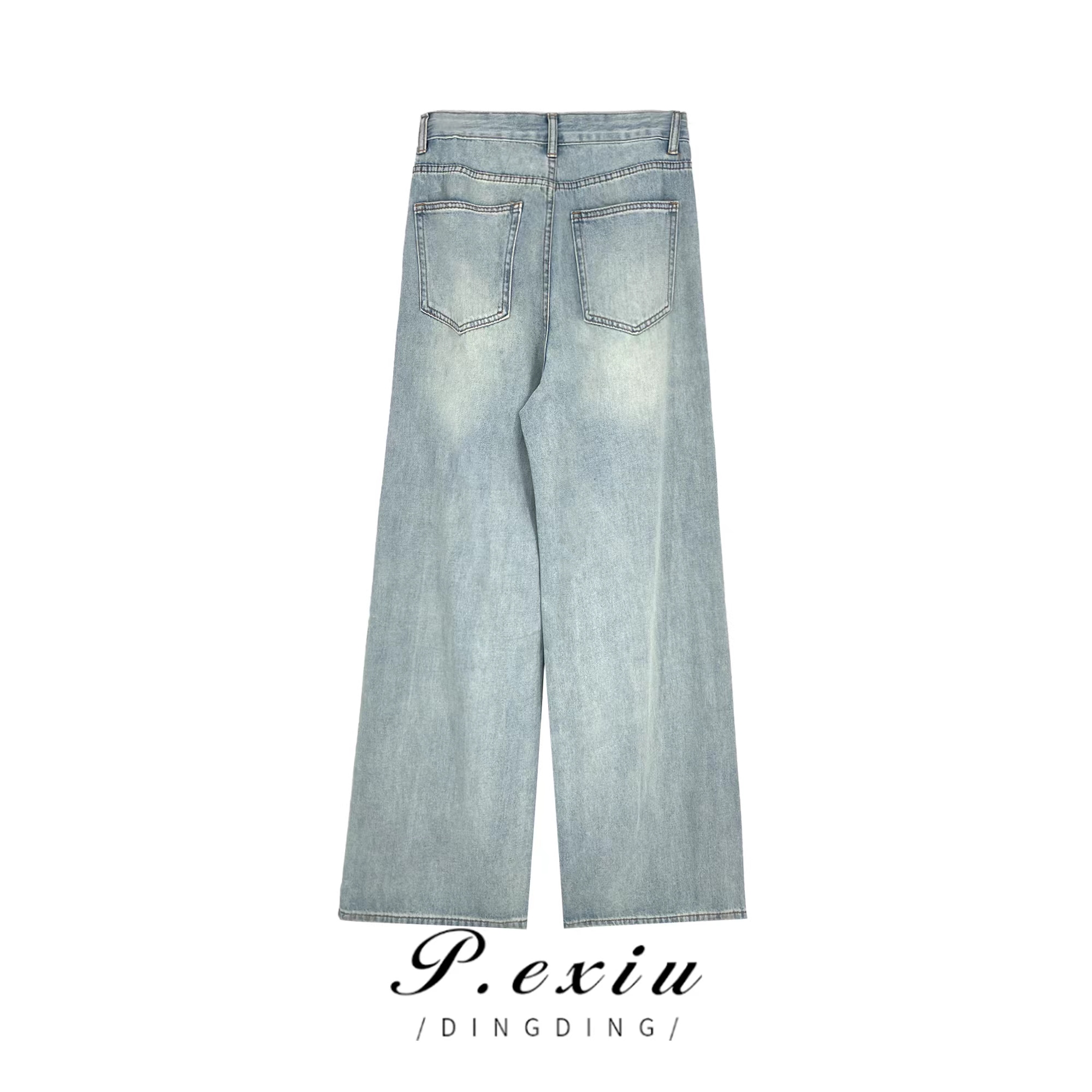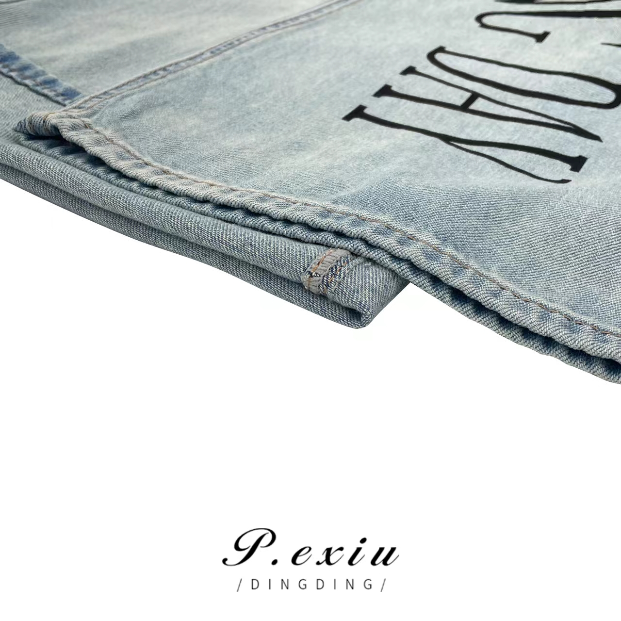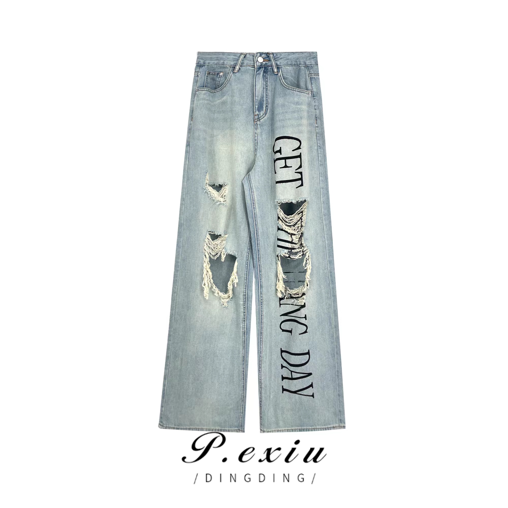 01-1潘依绣丁丁宠粉 夏季美式水洗印花宽松时尚百搭破洞直筒牛仔裤 57210