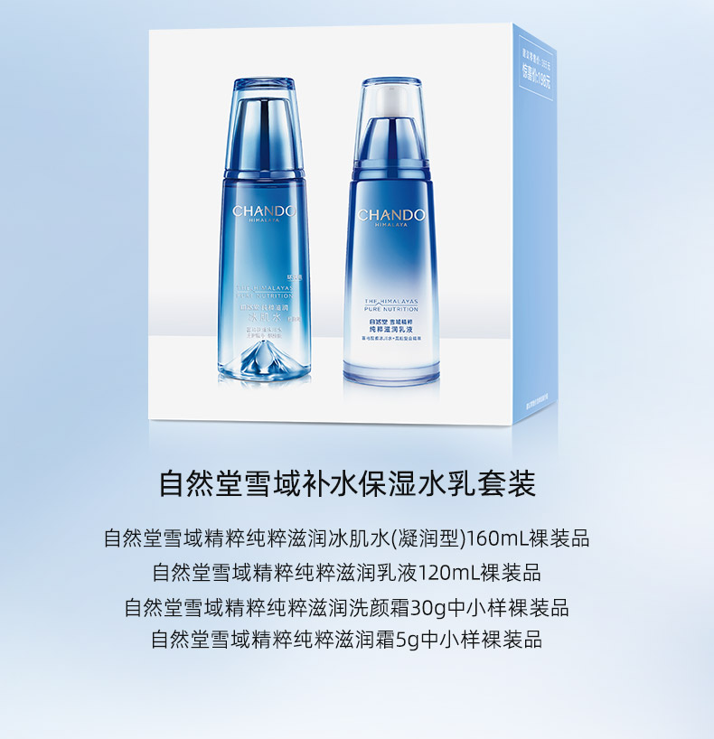 自然堂雪域补水保湿水乳套装160ml+120ml+30g+5g