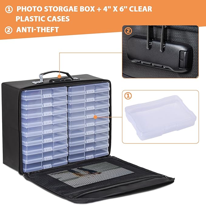 密码锁和高品质拉链:配备密码锁,这款照片盒收纳确保您的物品和个人信息安全无虞。照片整理器还配备了高品质的拉链,结实且顺畅,开合轻松无碍。