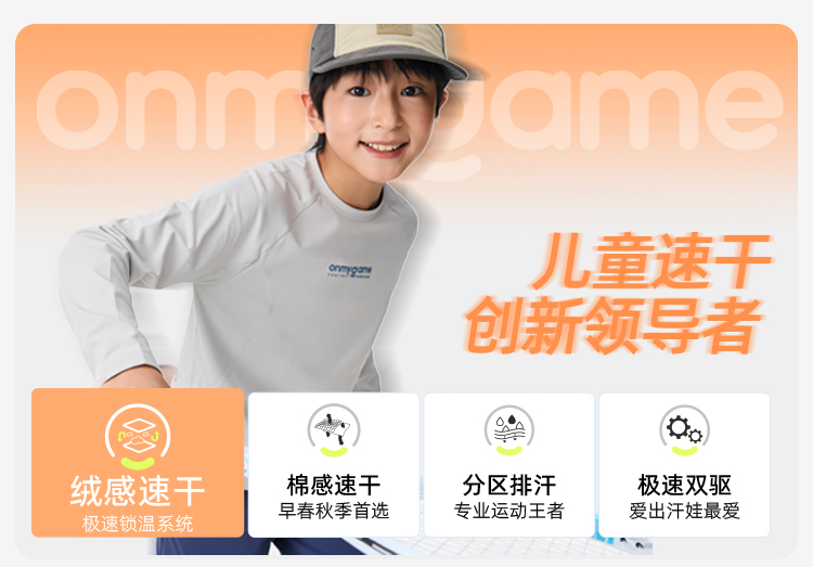 onmygame【超轻绒感速干】儿童外套亲肤户外运动抑菌上衣25秋季新
