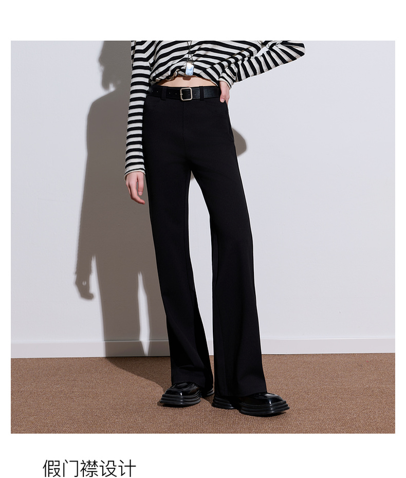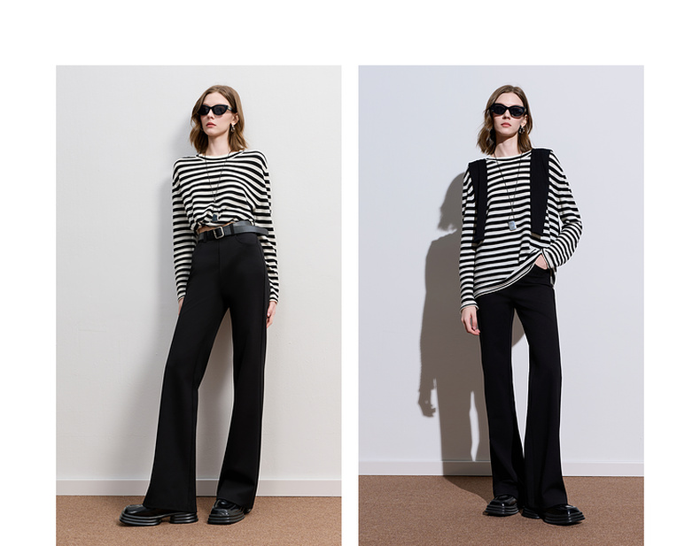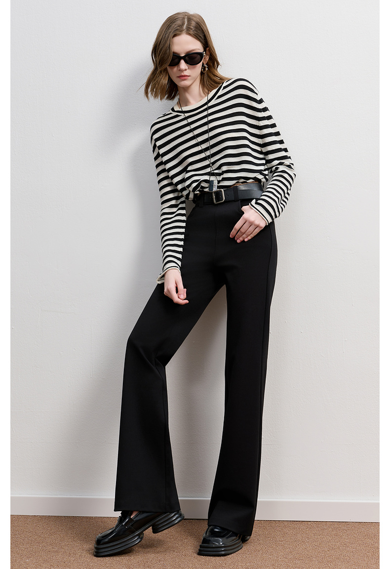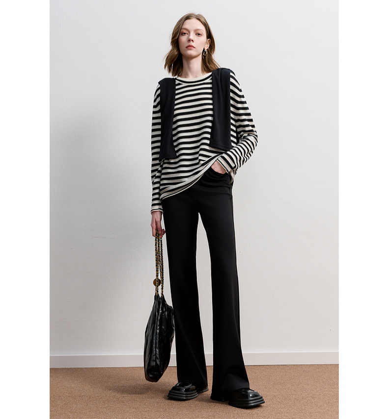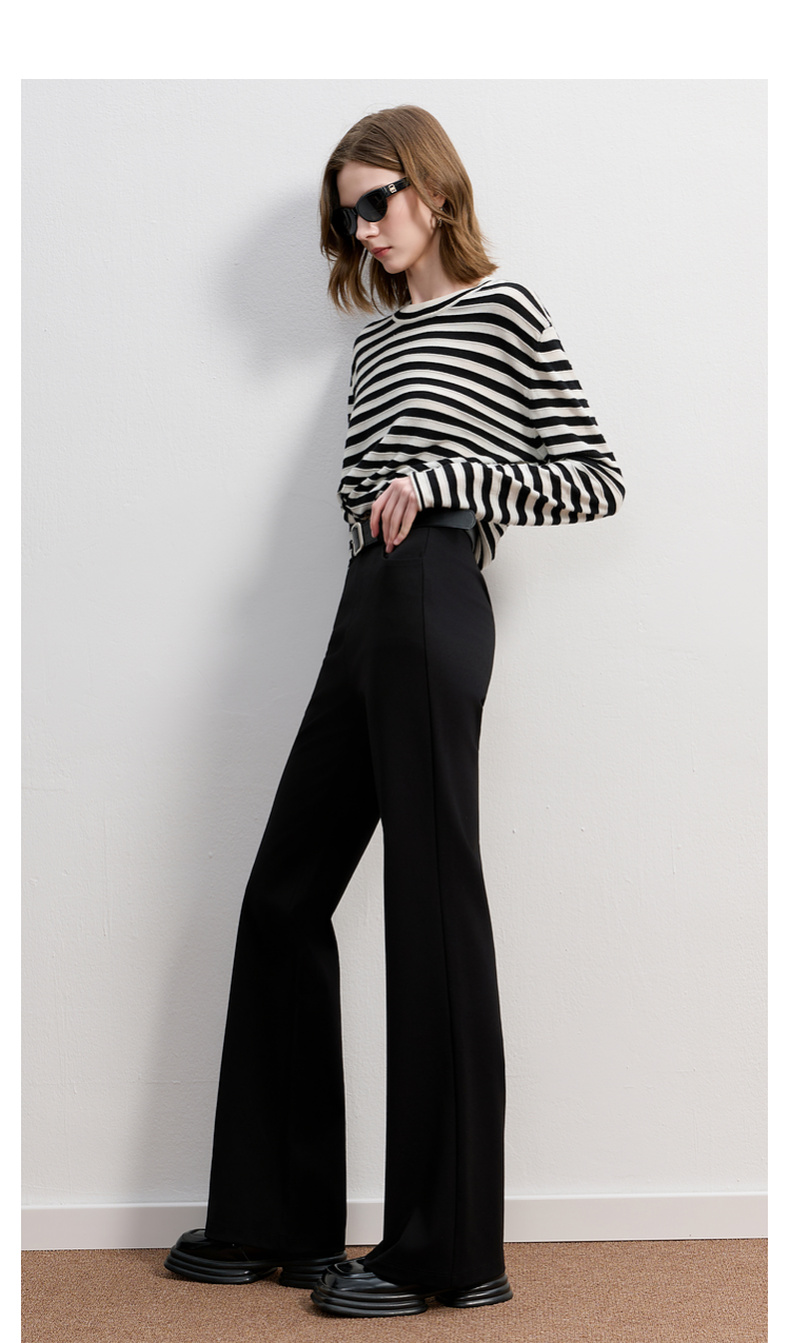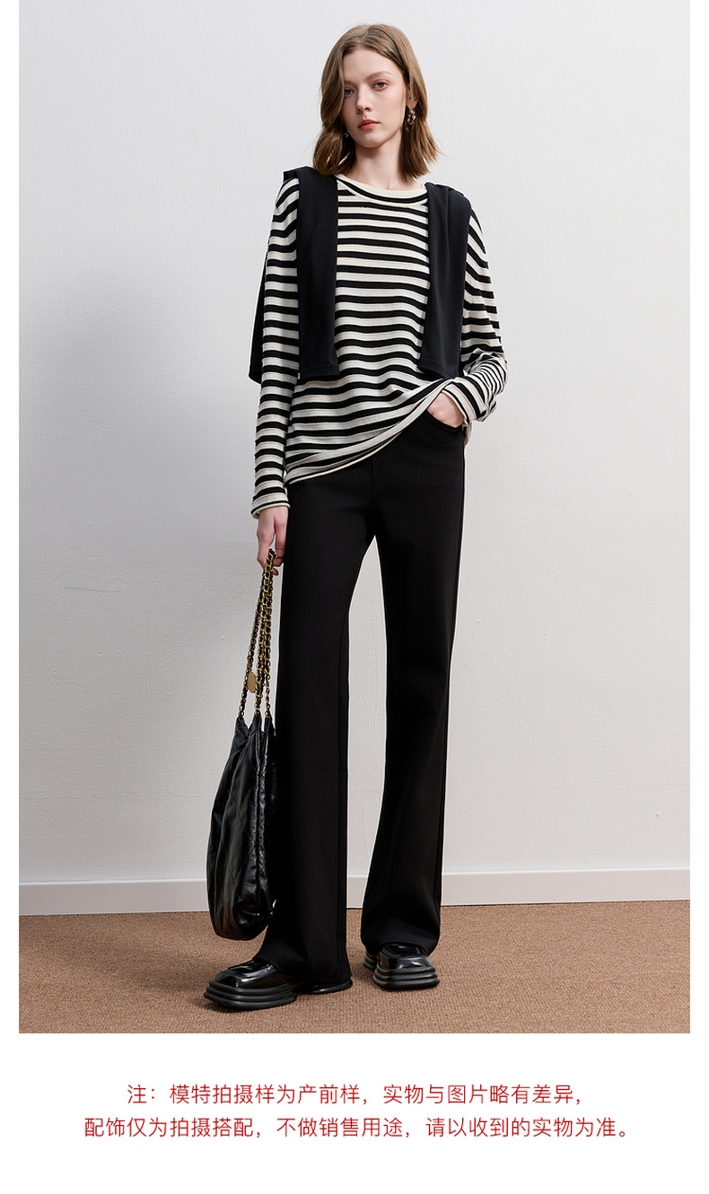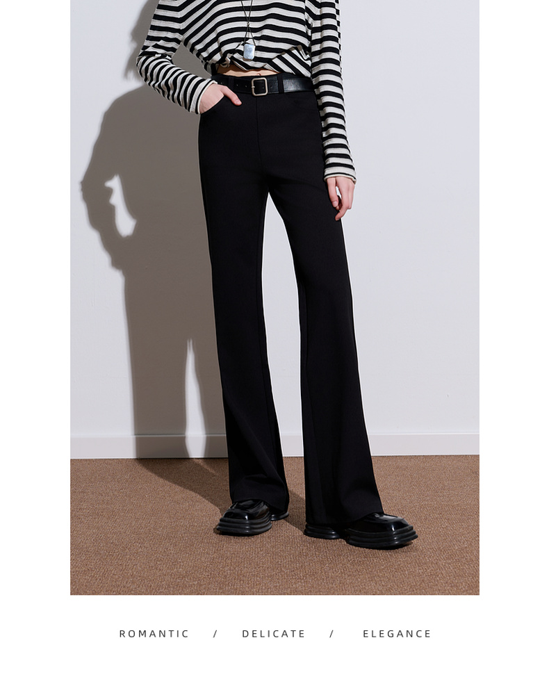 三彩2025秋季新款休闲微喇裤修身喇叭裤长裤小黑裤M