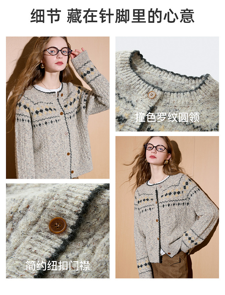 【奶油针织】三彩2025冬季新款宽松慵懒提花针织衫长袖单排扣开衫复古外套M