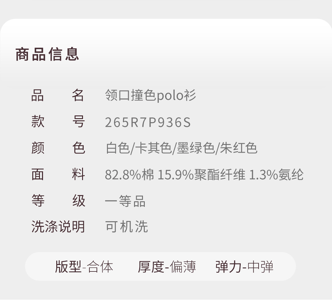 【柔感9号】领口撞色polo衫265R7P936S【门店同款·五星推荐】