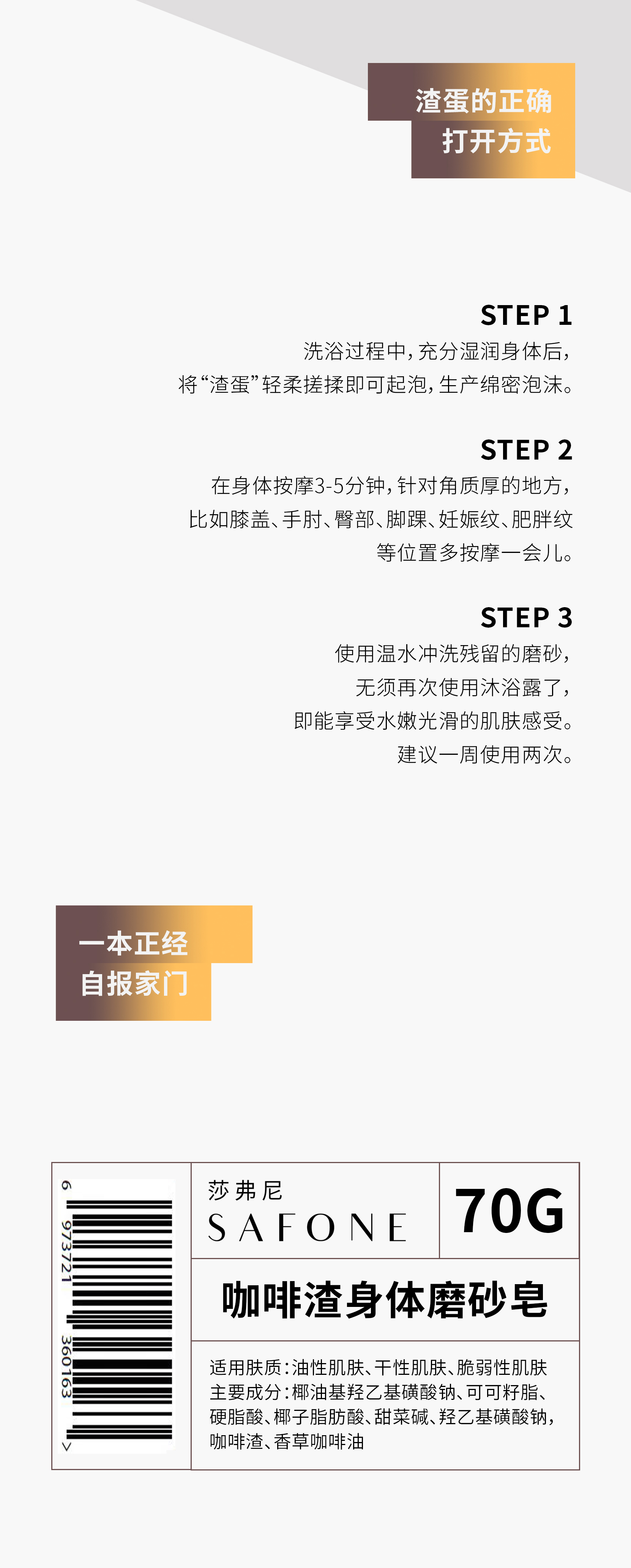 SAFONE 莎弗尼 咖啡渣身体磨砂皂70g