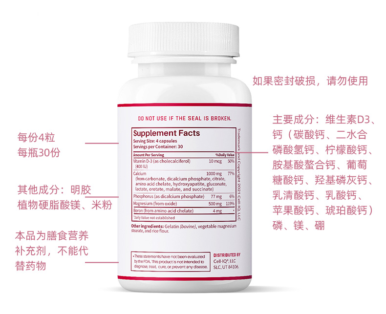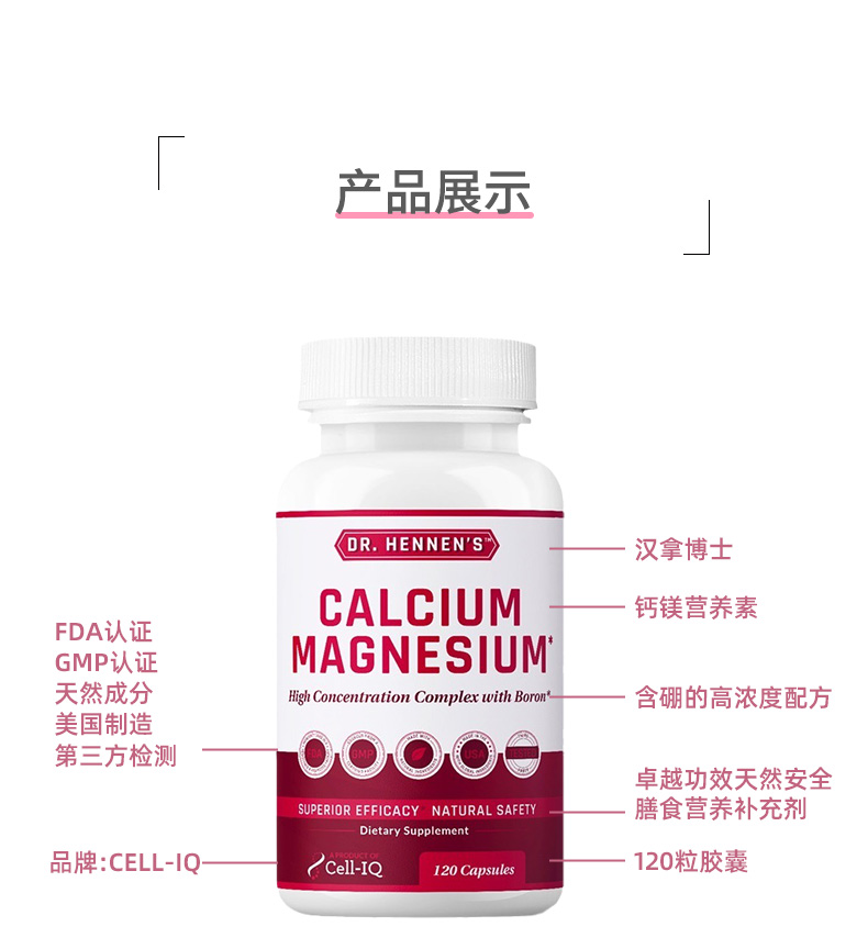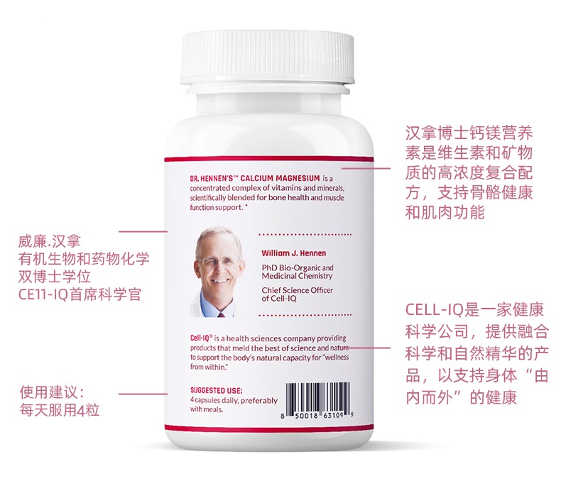 美国Cell-IQ汉拿博士钙镁营养素胶囊Calcium Magnesium(120粒)复合钙含维生素D3高含量易吸收营养品