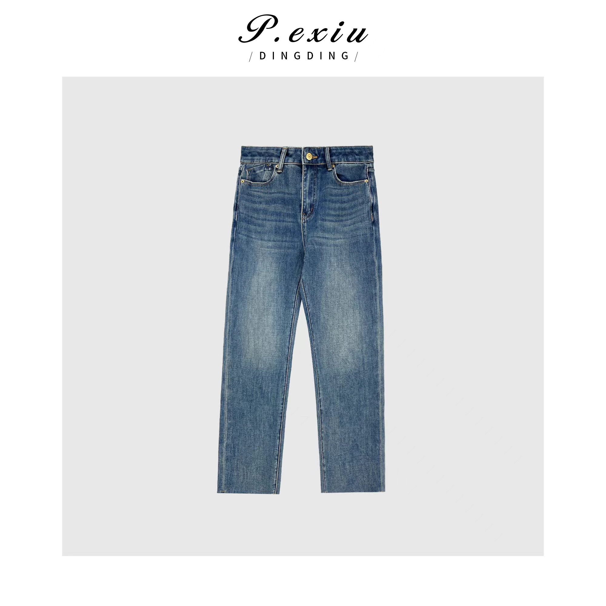 03-2潘依绣丁丁宠粉PanYiXiu/潘依绣100%棉韩系休闲百搭水洗直筒牛仔裤 Q1655