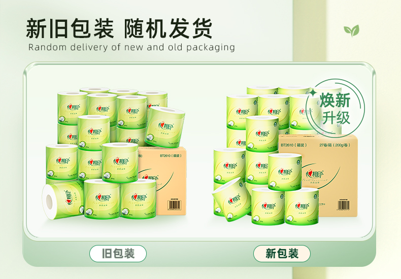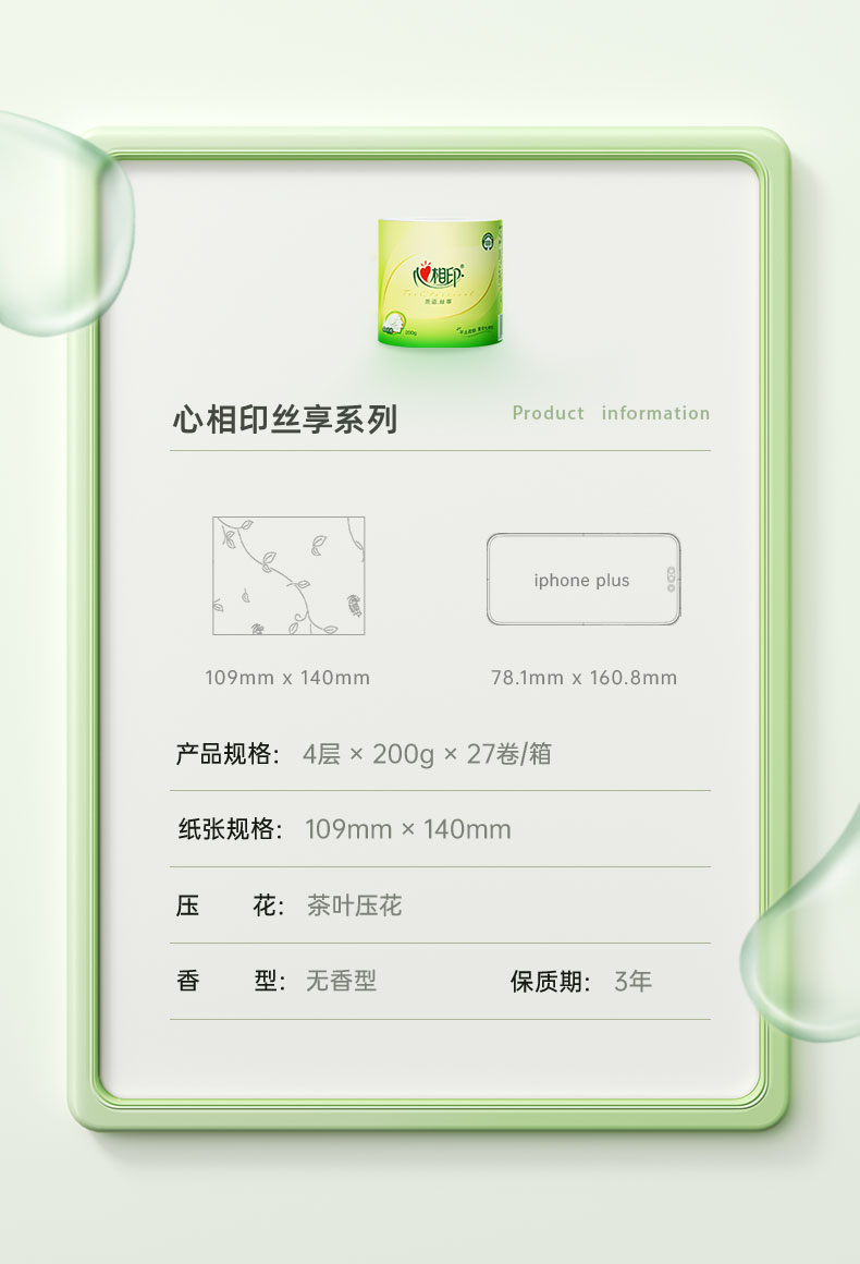 BT2610(箱装)心相印茶语经典200克27粒装四层茶叶压花卷筒卫生纸