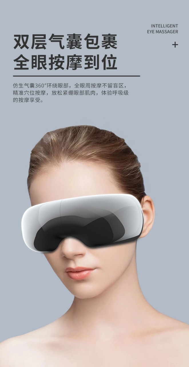 一、护眼仪的工作原理是通过双层气囊包裹对眼周穴位进行揉压模拟指腹按摩