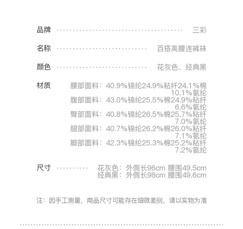 三彩2025新款连裤袜微压显瘦高腰打底裤袜黑灰秋冬保暖无痕外穿