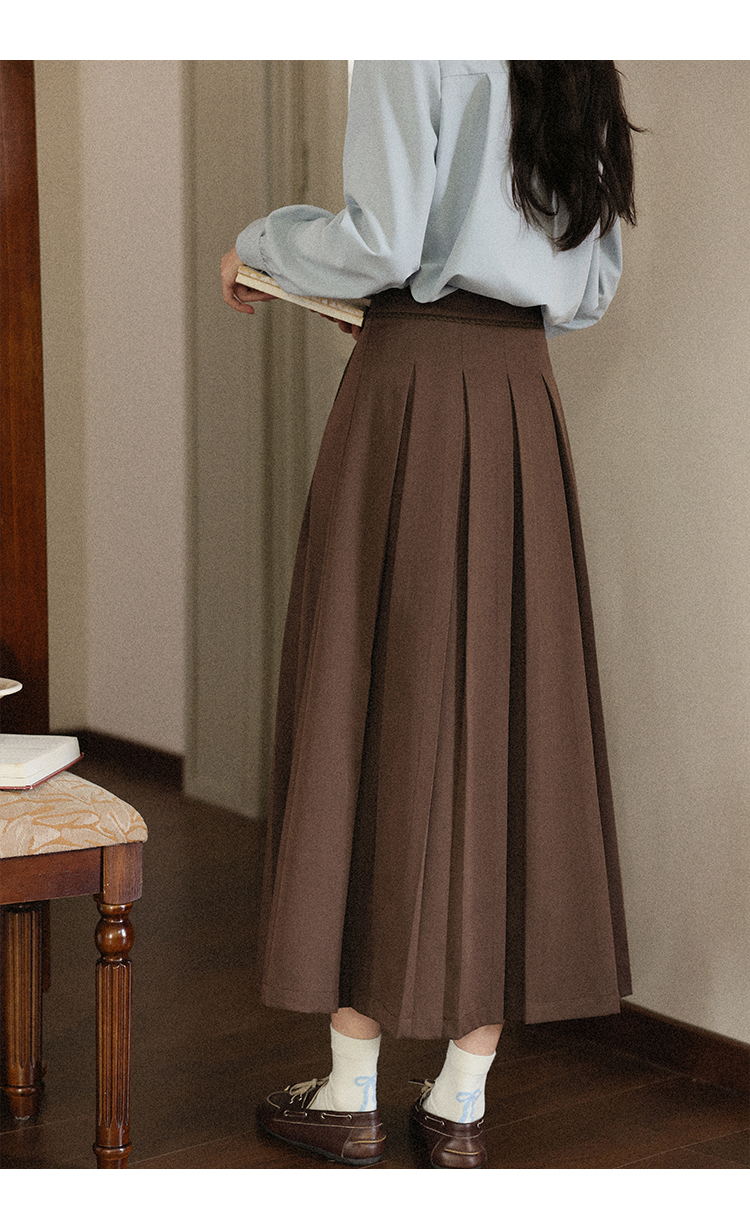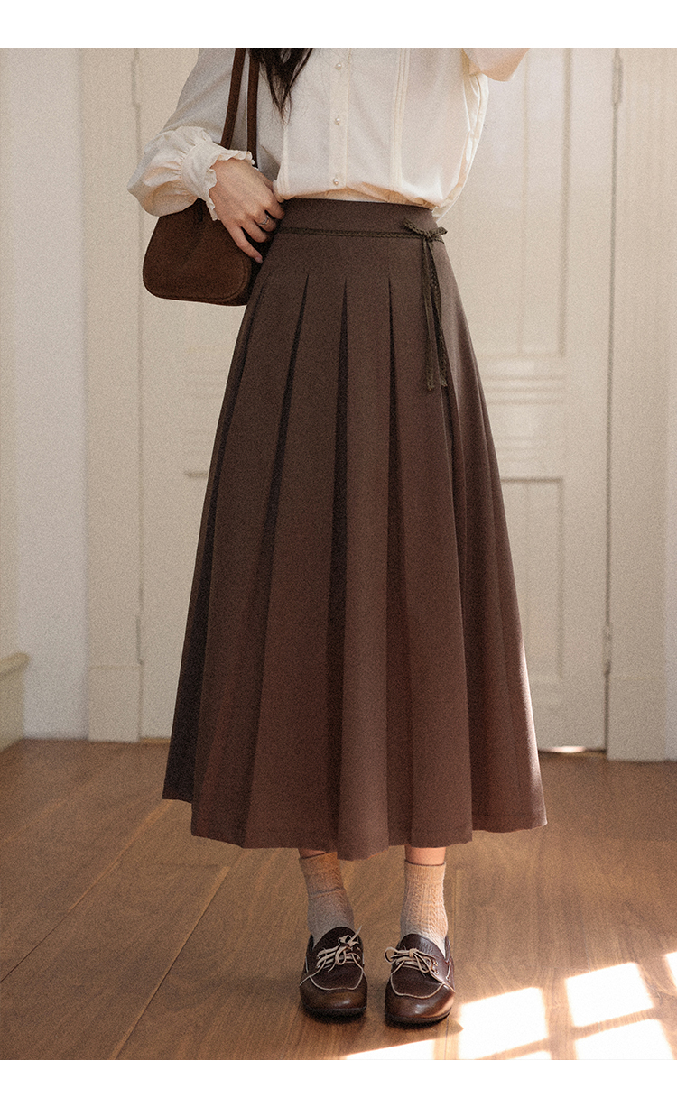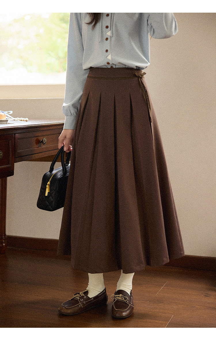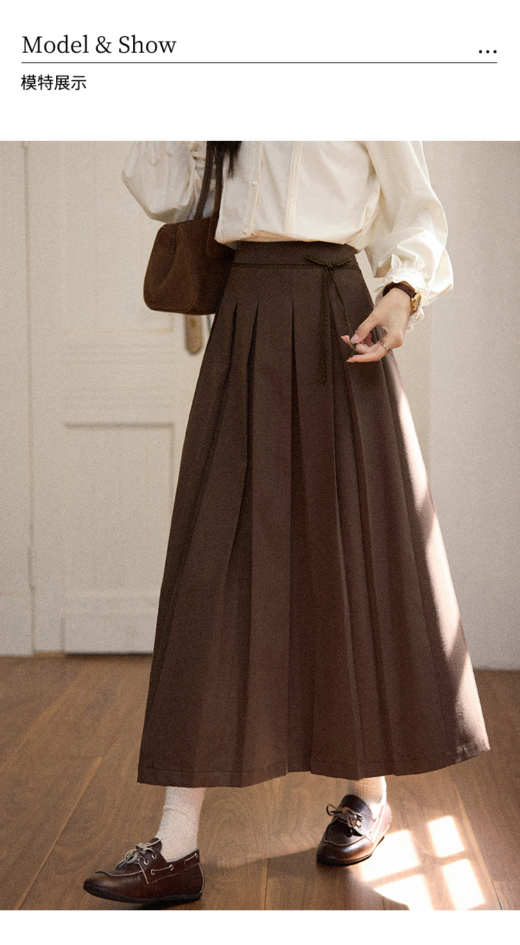 鹿向南「焦糖卷云」小个子高腰半身裙女早秋设计感长款咖色百褶裙