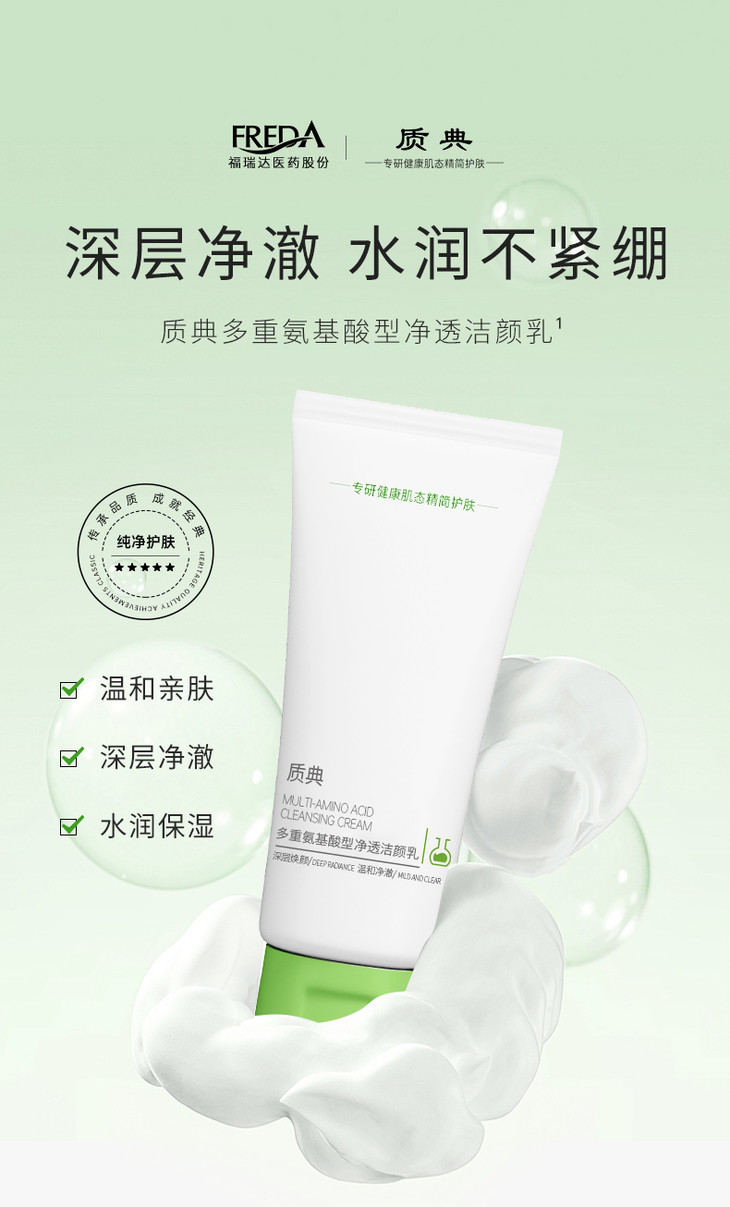 福瑞达|【质典多重氨基酸型净透洁颜乳】温和清洁保湿不紧绷