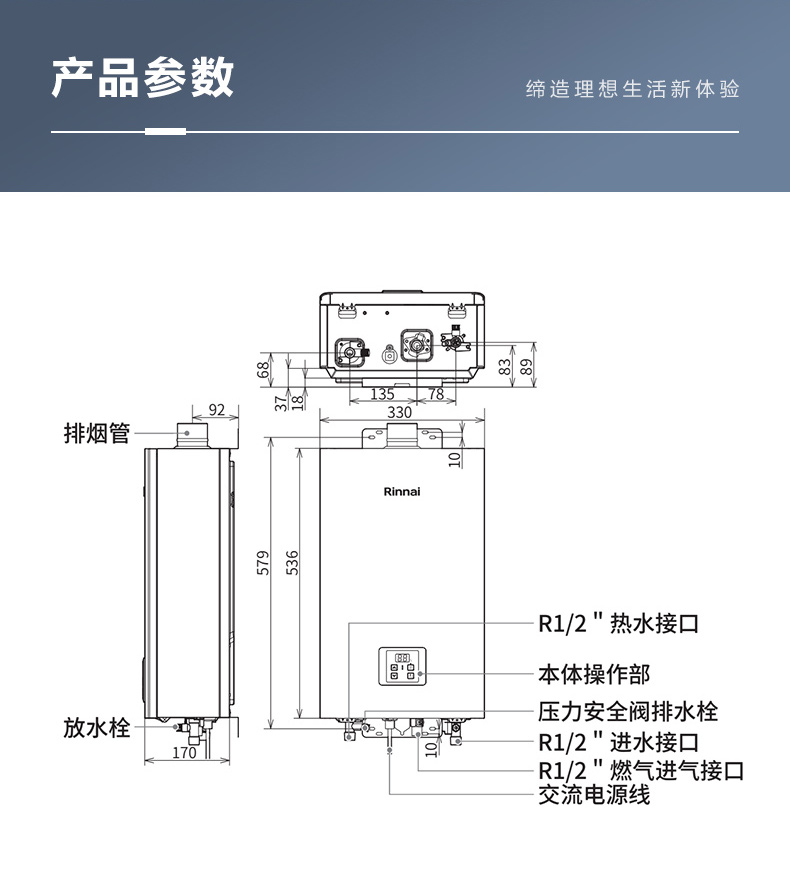 林内燃气热水器家用恒温天然气静音洗澡16升强排式GS41