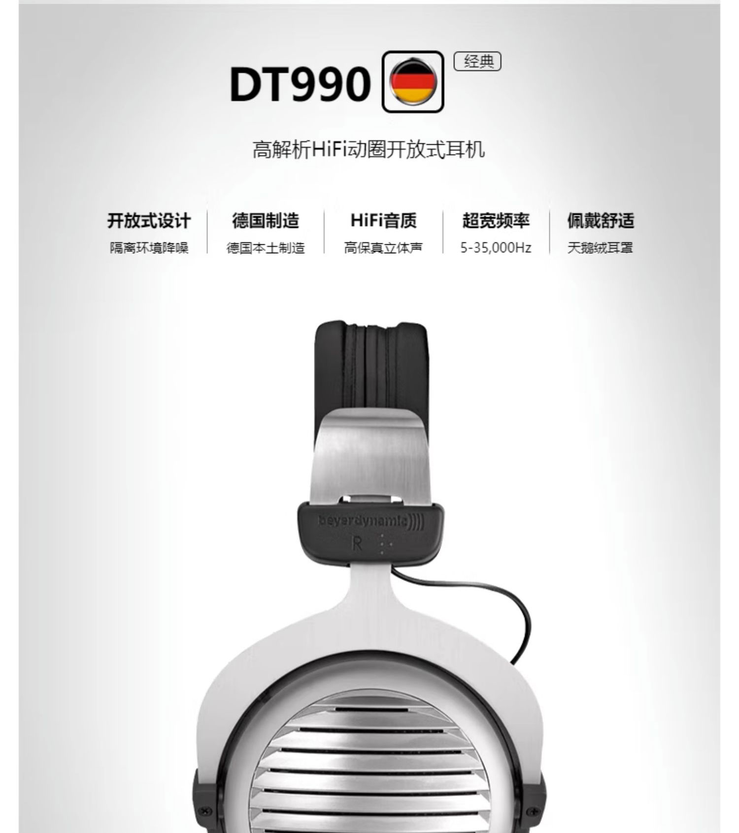 beyerdynamic拜雅动力 DT990 头戴式高解析HIFI动圈开放式耳机